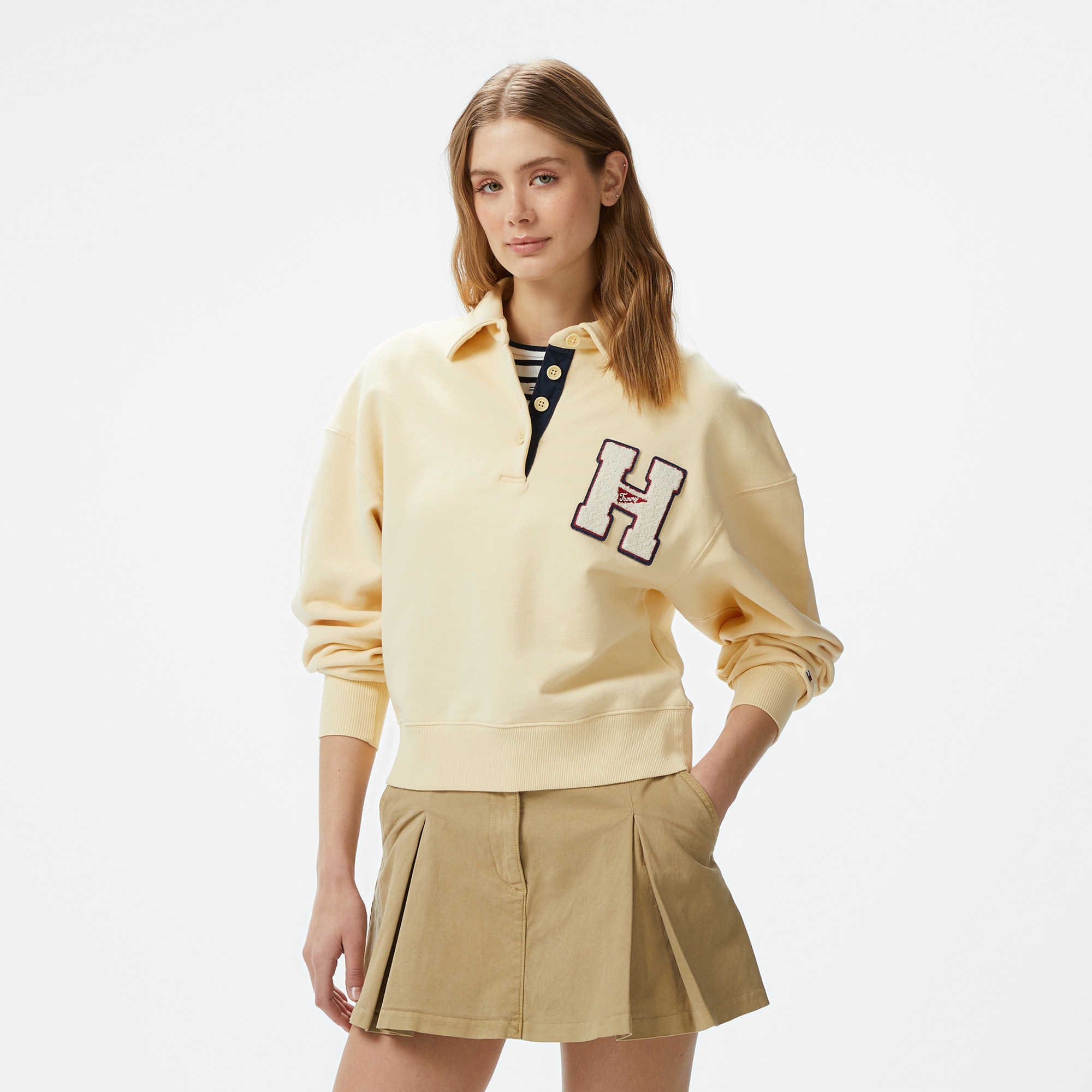 TOMMY HILFIGER kadın sweatshirt'ün sade ve şık tasarımıyla günün her anında konforu ve stili bir arada sunuyor. Sarı rengi ve ön yüzünde yer alan büyük 'H' harfi ile dikkat çeken bu sweatshirt, hem spor hem de günlük kullanım için idealdir.