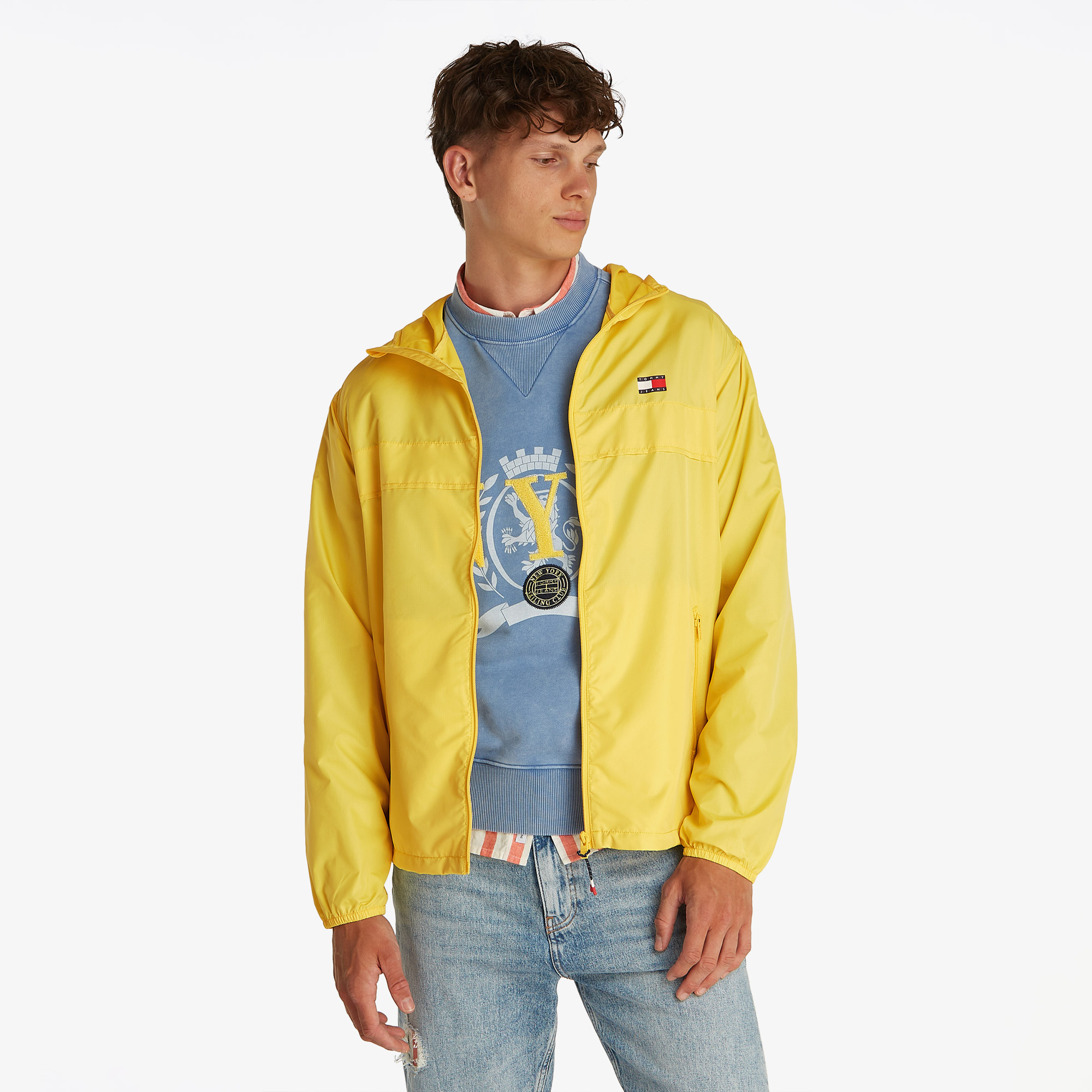 TOMMY HILFIGER erkek rüzgarlığı, dikkat çekici sarı rengi ile stilini ön plana çıkarır.