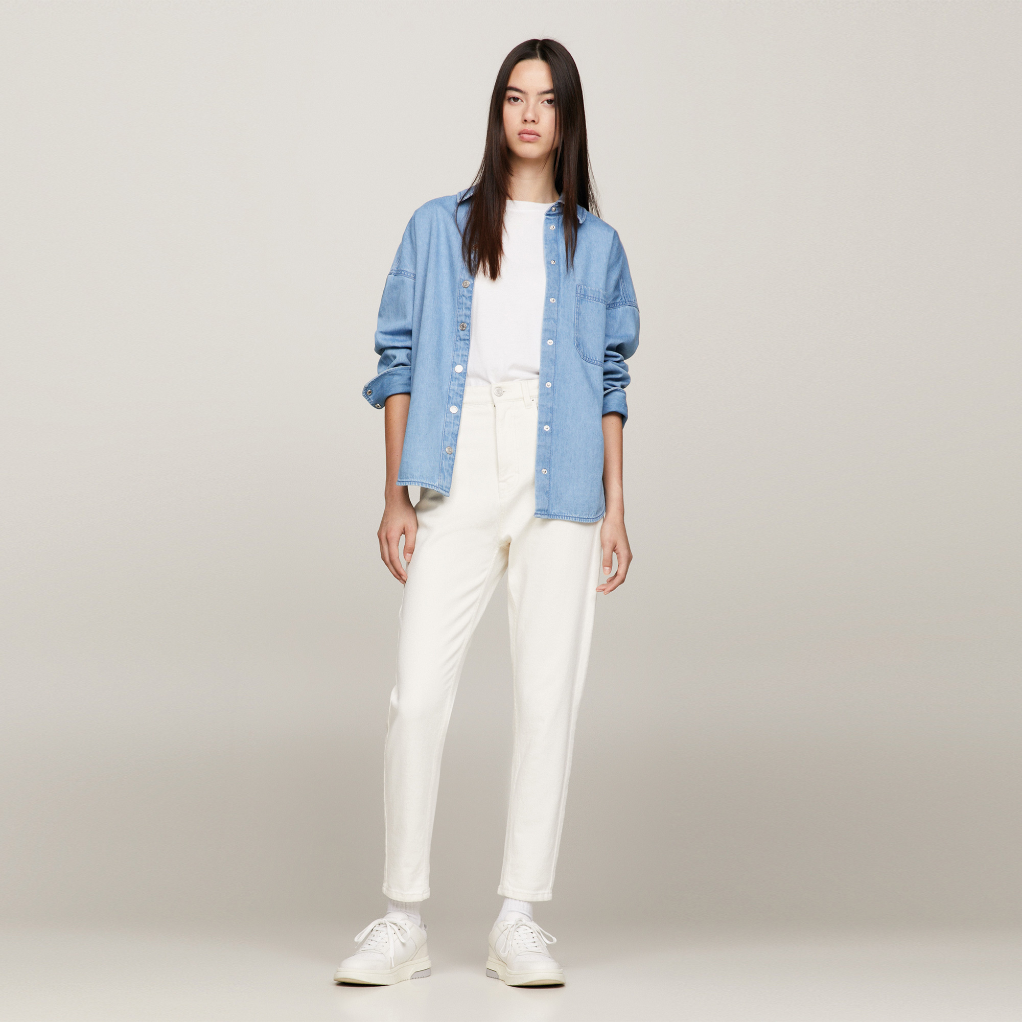 Tommy Jeans Mom Slim Fit Yüksek Bel Kadın Beyaz Pantolon Özellikleri