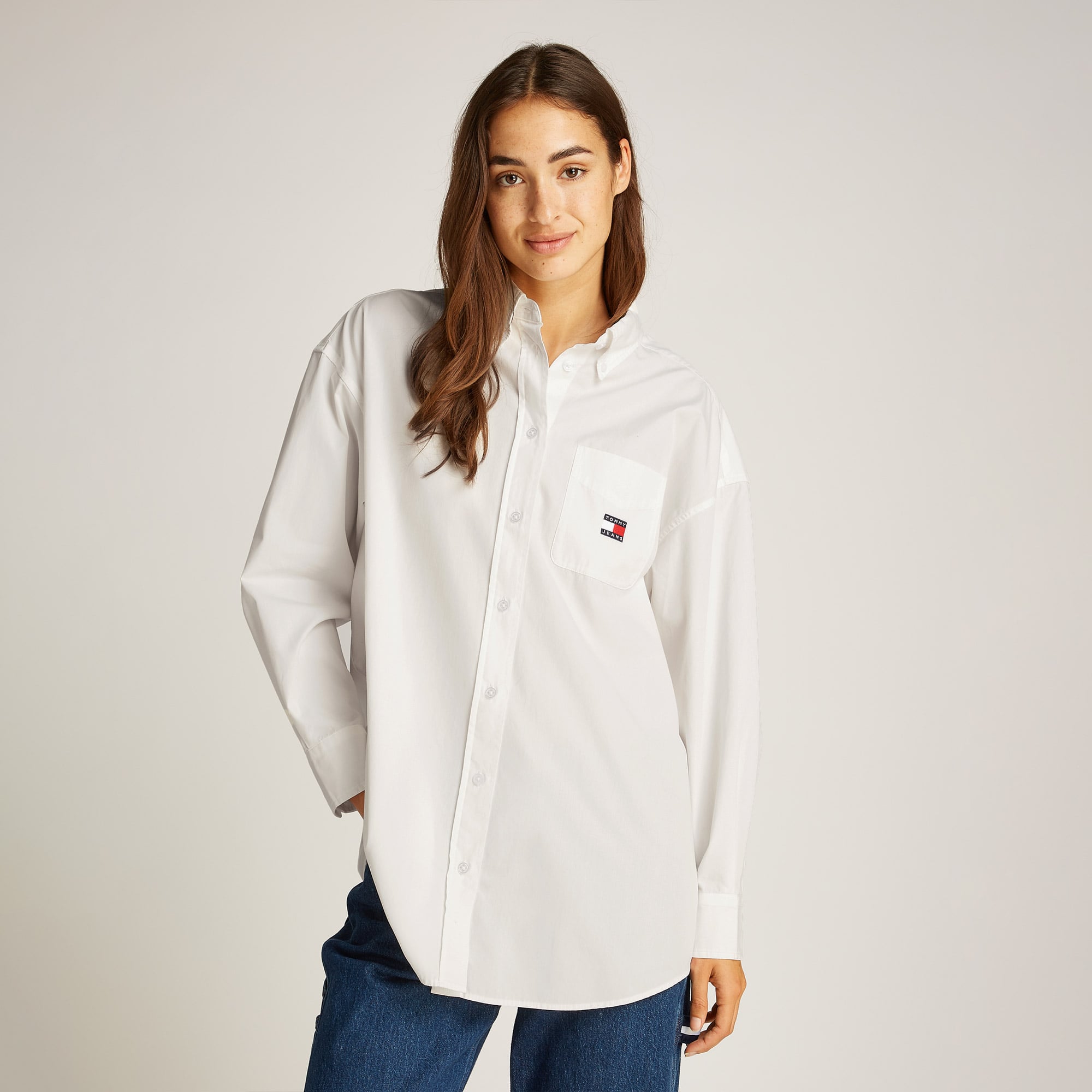 Tommy Jeans Ovs Badge Poplin Ext Kadın Beyaz Gömlek