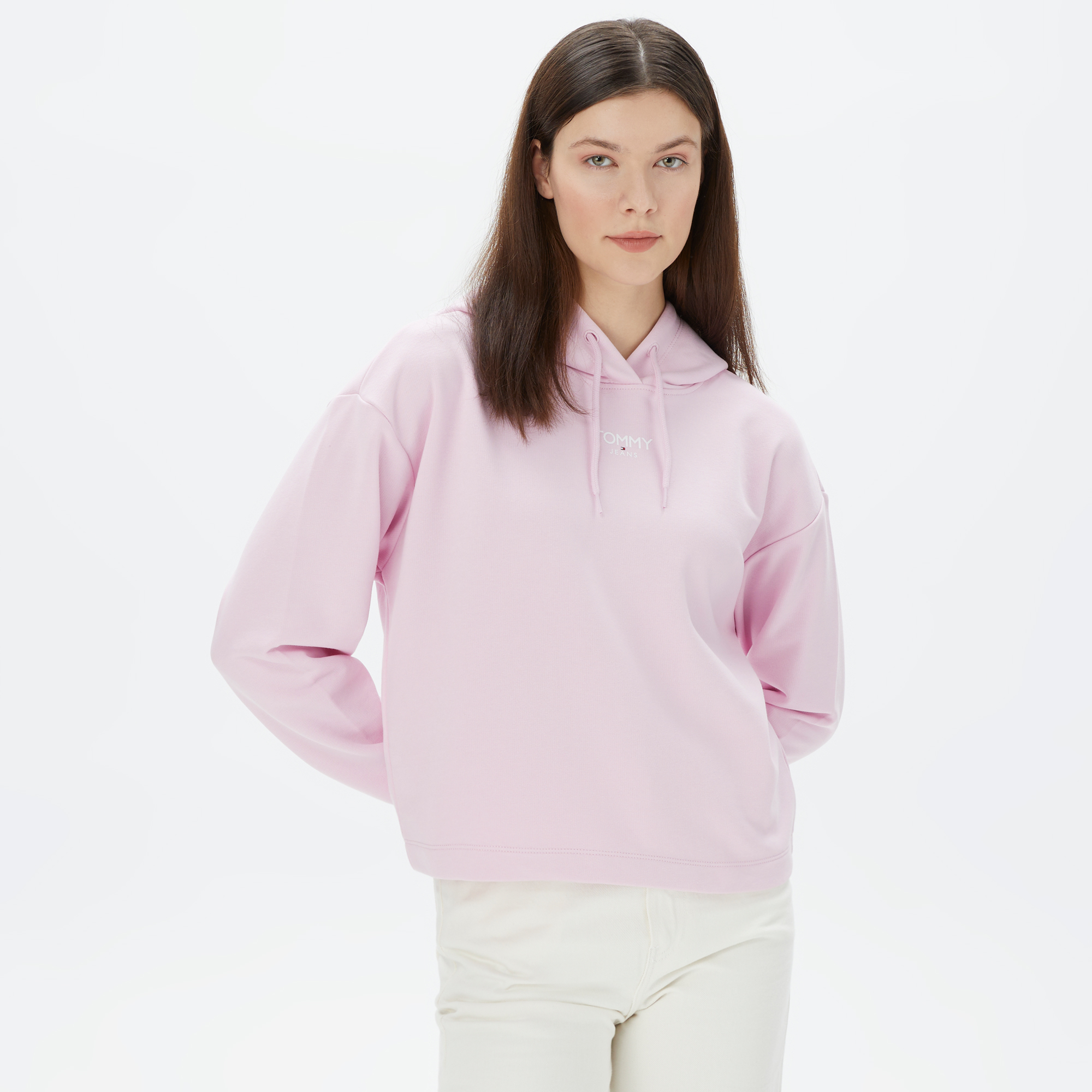Tommy Jeans Relax Crop Essential Logo Hoodie Kadın Pembe Sweatshirt Özellikleri
