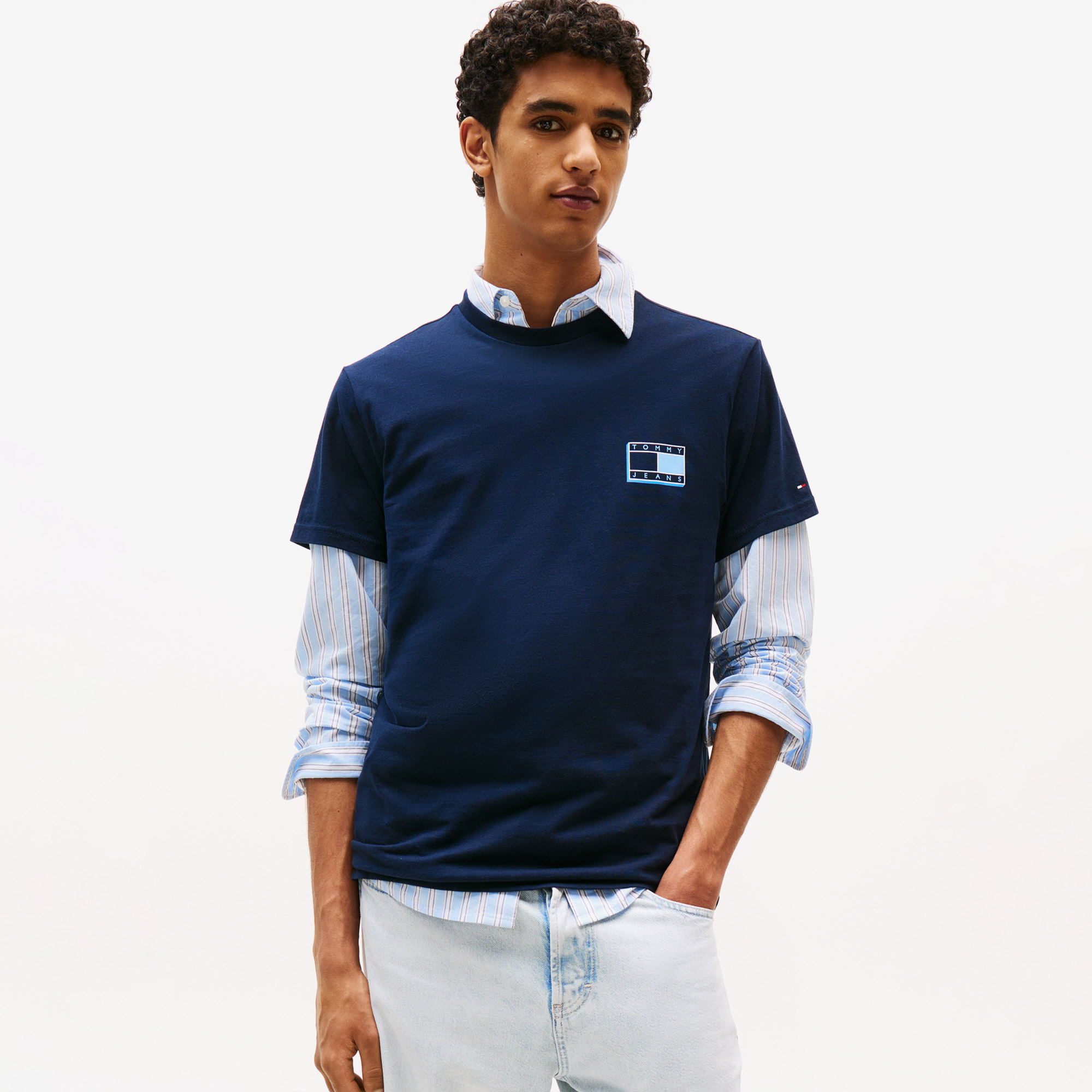 Tommy Jeans Slim Pop Color Flag Erkek Mavi T-Shirt