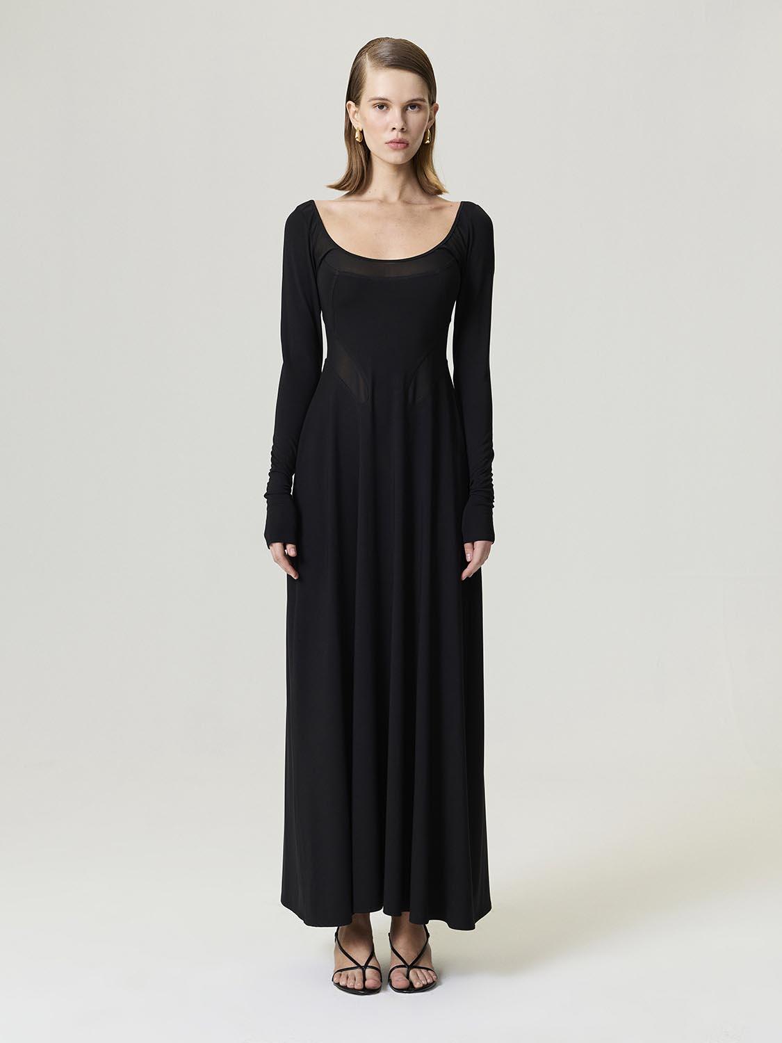Çarpıcı ve zarif olan bu şeffaf detaylı maksi elbise, rahat hareket edebilmeniz için yumuşak örme kumaştan normal kesimle tasarlanmıştır. Yuvarlak yaka, uzun kollar ve kontrast panellerle modern tasarımı sofistike bir dokunuşla birleştirir. Şeffaf detaylar cazibe katarken, maksi boyu zarif bir görünüm sağlar. Akşam davetleri, özel etkinlikler veya cesur bir gündüzden geceye görünüm için mükemmeldir. Kalıp: Regular Fit Model Ürün Bedeni: S