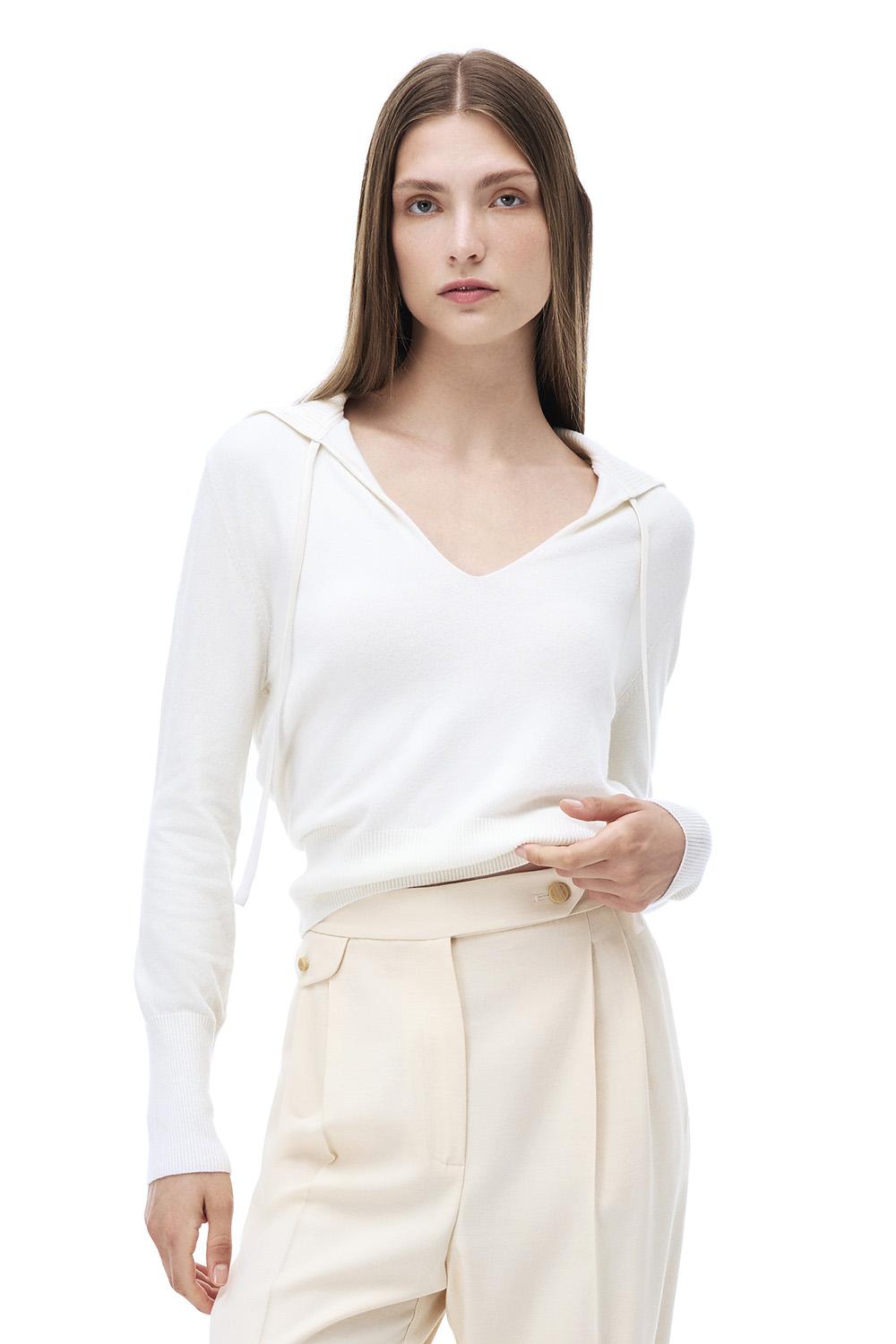 Triko Rahat Kalıp Standart Boy Takma Kol V-Yaka Ekru Kazak