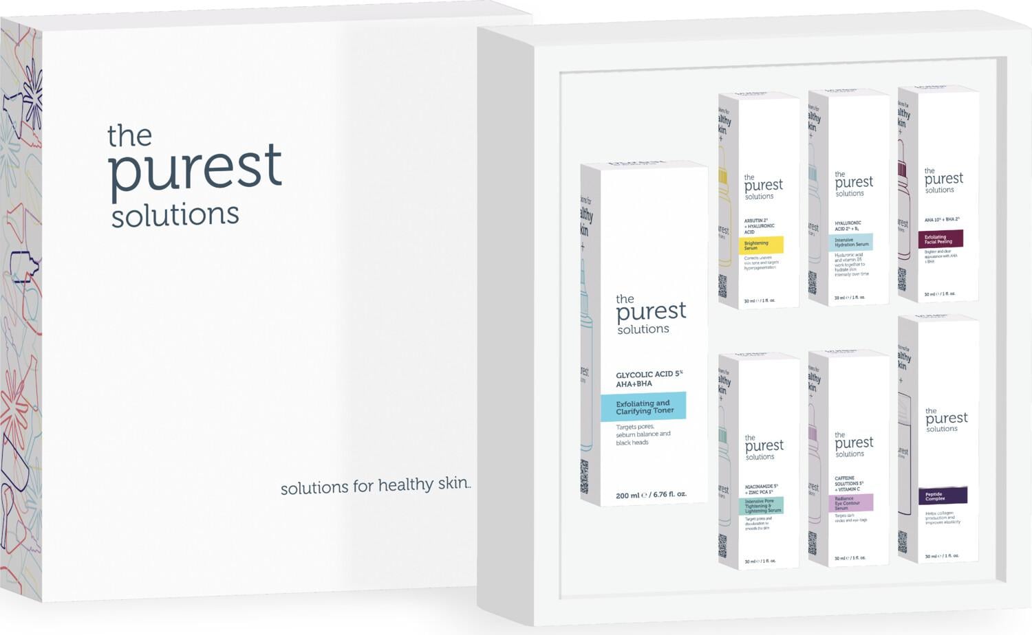 Arbutin Serum :Cilt tonu eşitsizliklerinin giderilmesine yardımcı olur, düzenli kullanım ile daha canlı ve aydınlık bir cilt görünümü kazanılmasını destekler; Niacinamide Serum :Genişlemiş gözenek görünümünün azaltılması, cilt tonu eşitsizliklerin dengelenmesi ve pürüzsüz cilt dokusu oluşumunu hedefler; Cilt bariyerinin güçlendirilmesi ve cildin sağlıklı bir görünüm kazanmasına yardımcı olur; Peptide Complex Serum :Yaşlanma belirtilerine karşı cildin güçlü bir savunma oluşturmasını destekleyici özelliktedir; İnce çizgilerin önlenmesi ve derin kırışıklıkların görünümünün azaltılmasını hedefler; Caffeine + VitaminC Serum :Göz altı torbalanmalarını ve cilt tonu farklılıklarını hedefler; Gözaltının aydınlık ve dinlenmiş bir görünüm kazanmasına yardımcı olur; Göz çevresinde oluşan yaşlanma görünümünün azalmasına yardımcı olarak göz çevresine bakım yapar ve ışıltılı bir görünüm almasını sağlar; Tonik:Cildin nazikçe ölü deri, yağ, kir ve makyaj kalıntılarından arındırılmasına , gözenek görünümünün azaltılmasına ve sebum salgısının dengelenmesine yardımcı olur; AHA Facial Peeling:%10 Alfa Hidroksi Asit (Sitrik asit, Laktik Asit, Malik Asit, Glukonik Asit, Glikolik Asit, Salisilik Asit, Tartarik Asit, Askorbik Asit) ve %2 Beta Hidroksi Asit (Glikolik Asit ) formülasyonu yatıştırıcı Tazmanya Biberi ekstraktı ve nemlendirici Hyaluronik asit ile zenginleştirilmiş peeling solüsyon; Hyaluronic Acid Serum: Cildin kaybettiği nemin geri kazandırılmasını ve korunmasını hedefler; Cildin nemli, ışıltılı ve yumuşak bir görünümde olmasına yardımcı olur;