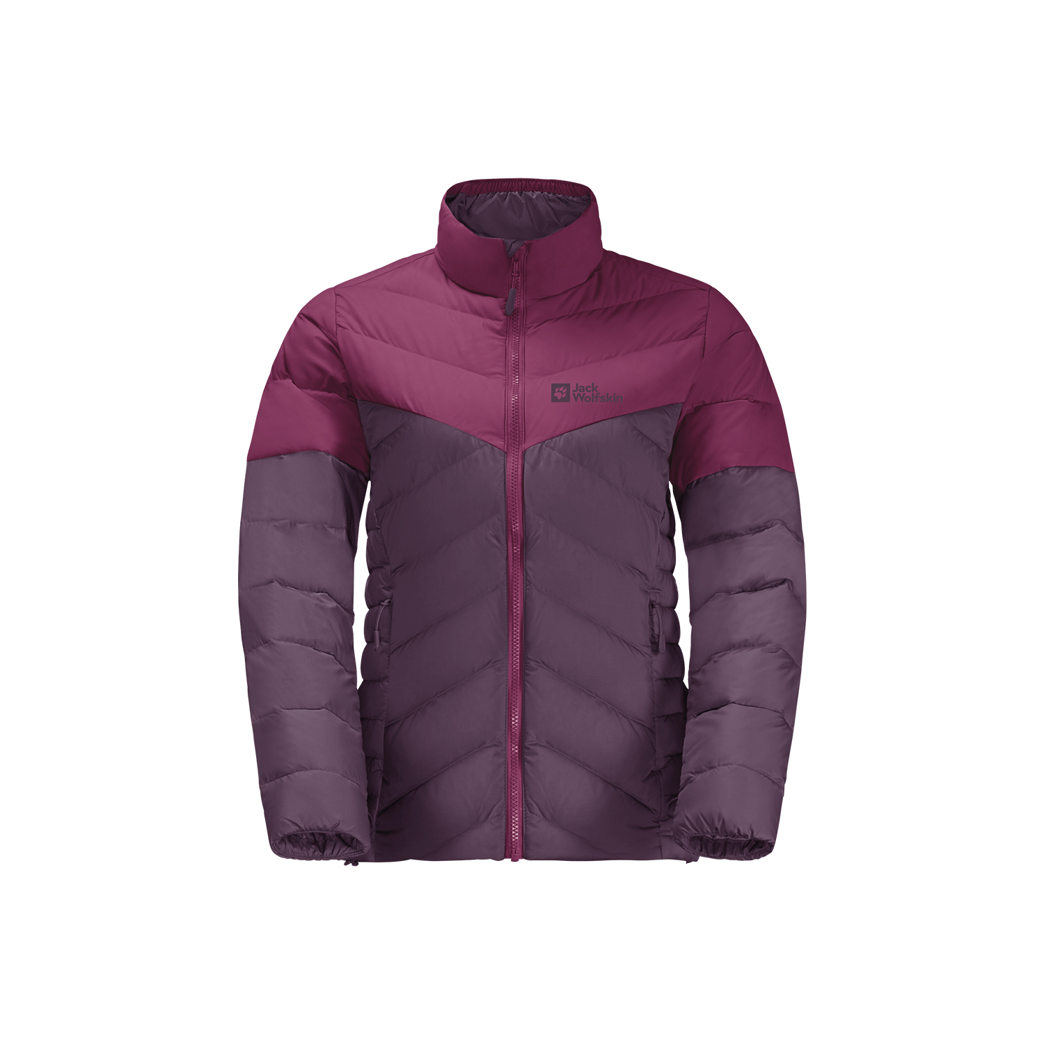 Jack Wolfskin Tundra Down kuş tüyü ceket, kışlık dış mekan gardırobunuz için bir ihtiyaçtır. Hardshell ile takım oluşturmak için sistem zip'ini kullanabilirsiniz. Tek başına giyilen ceket, blok renkli tasarımı ve çekici kumaş ve doku karışımıyla modern, feminen bir görünüme sahiptir. Ana kumaş pürüzsüz bir apreye sahipken, ek kumaş parşömen benzeri bir yapıya sahiptir.