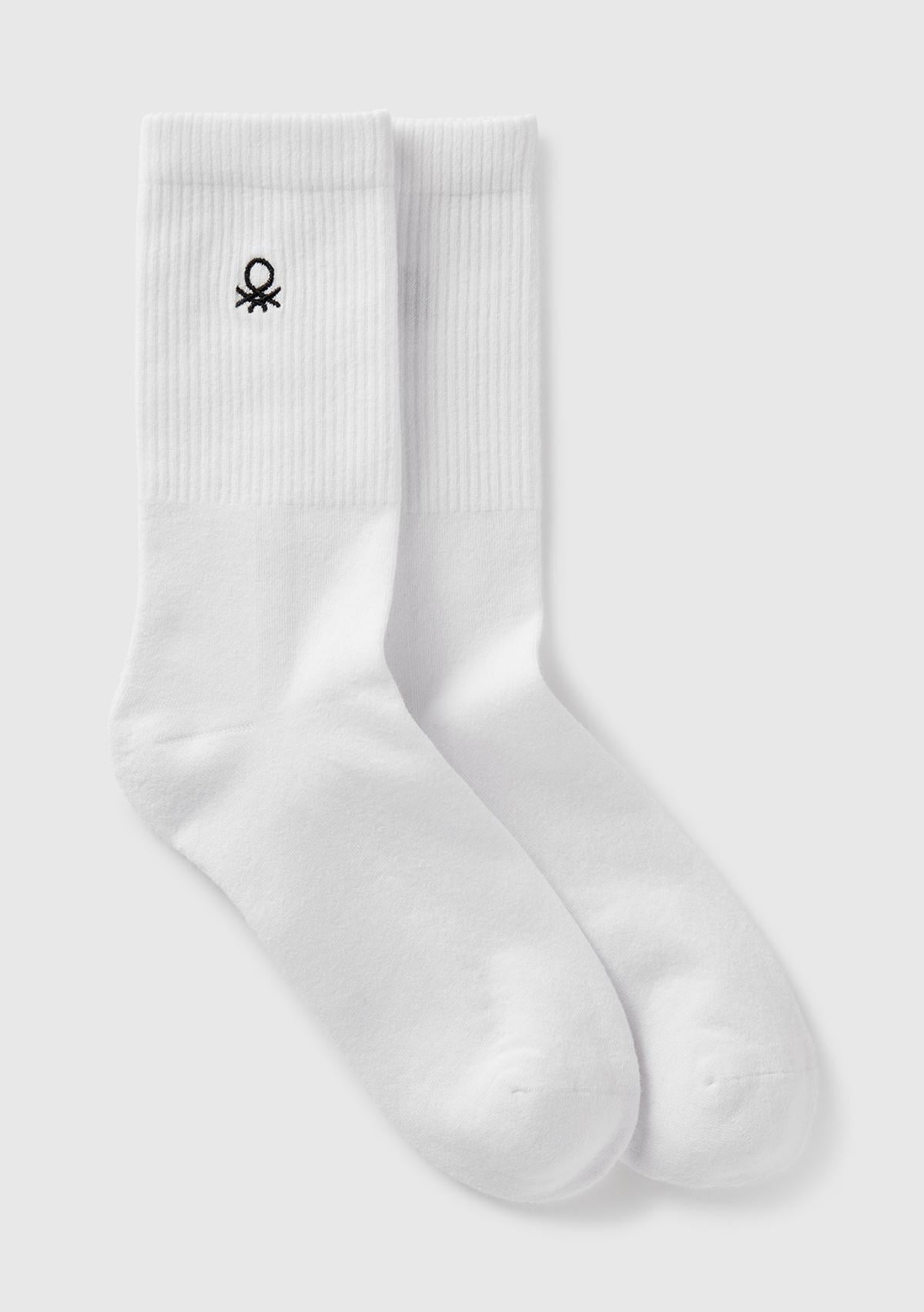 Unisex Beyaz Benetton Logolu Soket Çorap