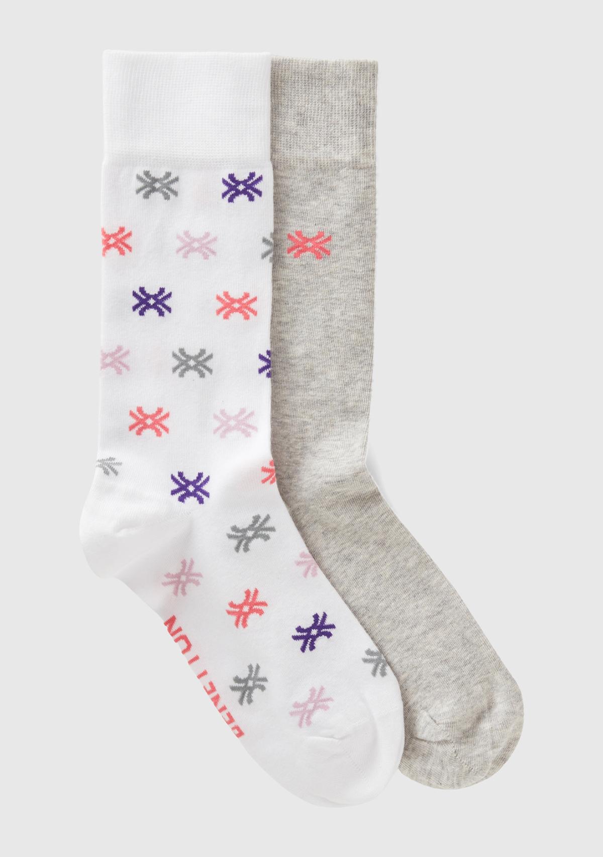 Unisex Beyaz Mix 2'li Soket Çorap