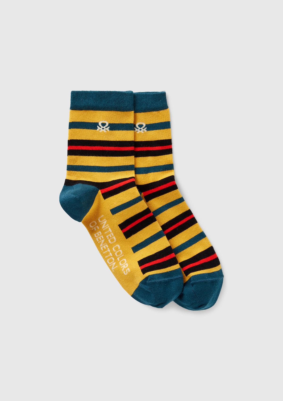 Unisex Sarı Mix Logo Detaylı Desenli Soket Çorap