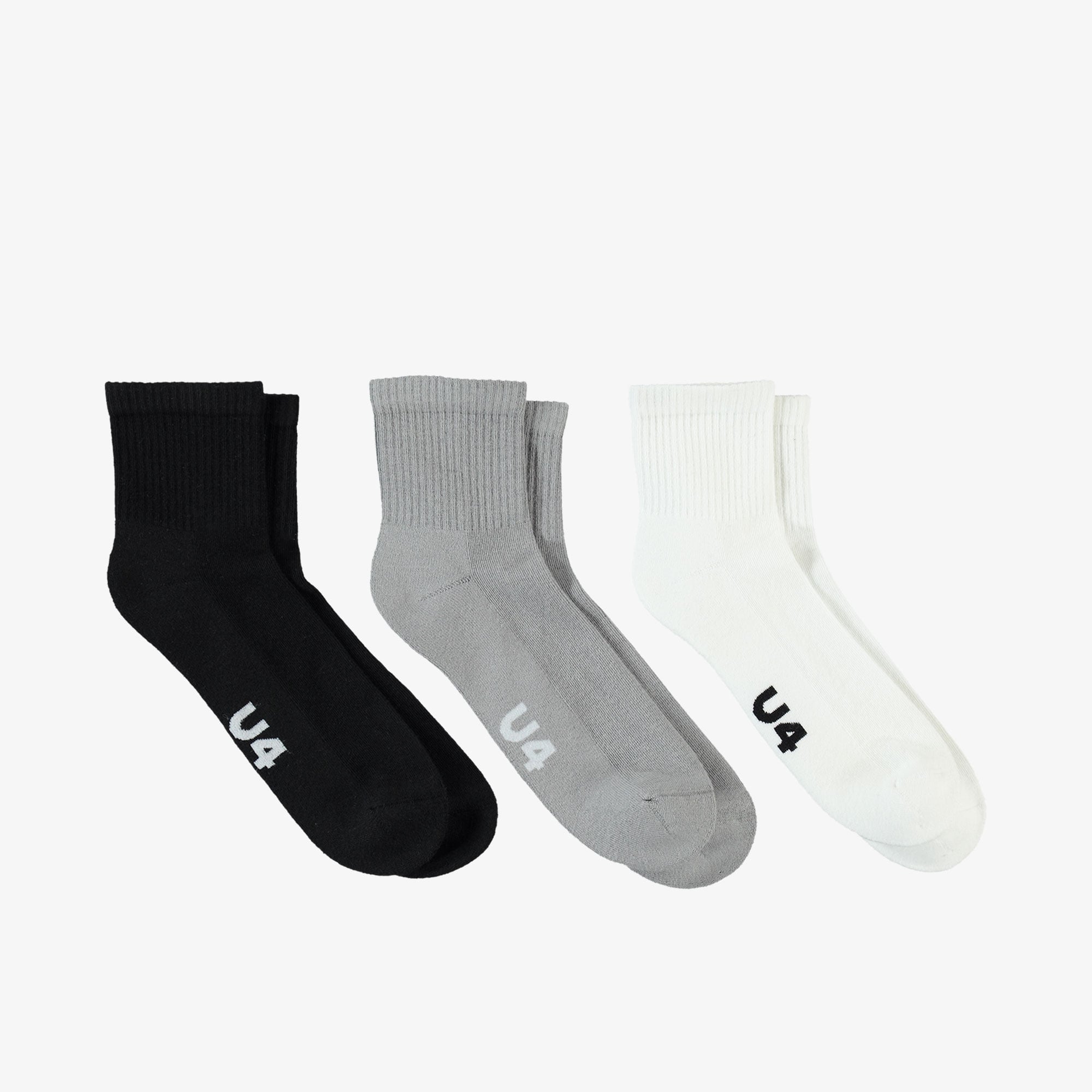 United4 Core Mid Crew Erkek Siyah/Gri/Beyaz 3lü Çorap
