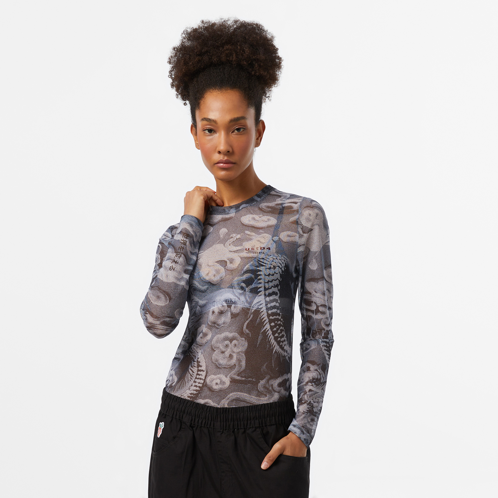 Tül detaylı ejderha deseni, güçlü ve dikkat çekici bir stil sunar