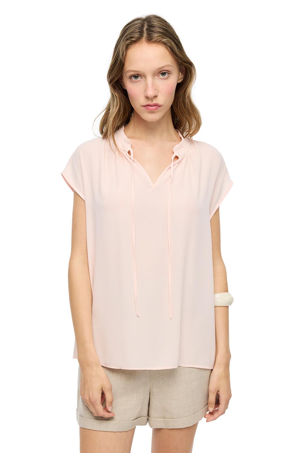 V-Yaka Düşük Kollu Bağcık Detaylı Bluz