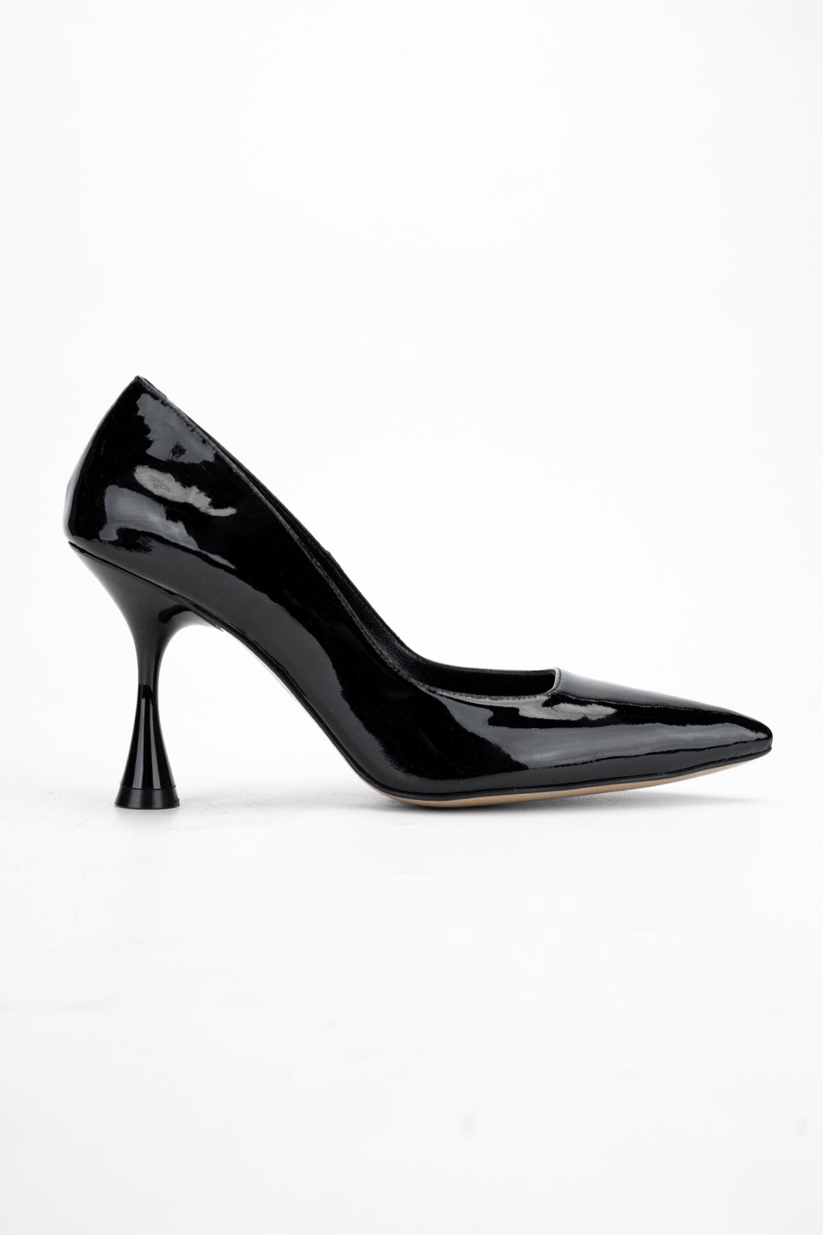 Valmenti Anya Kadın Siyah Rugan Hakiki Deri Topuklu Ayakkabı