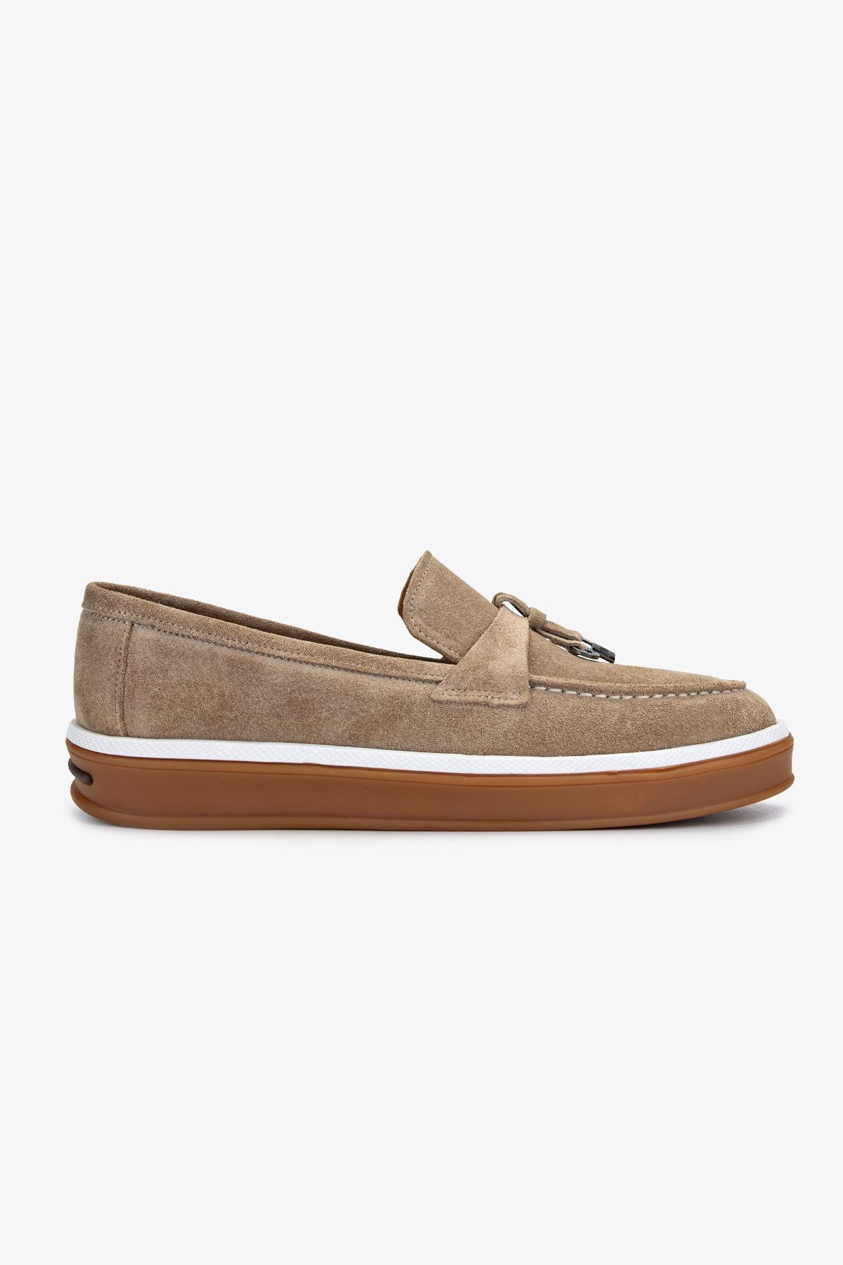 Valmenti Erkek Hakiki Deri Bisküvi Süet Loafer Ayakkabı