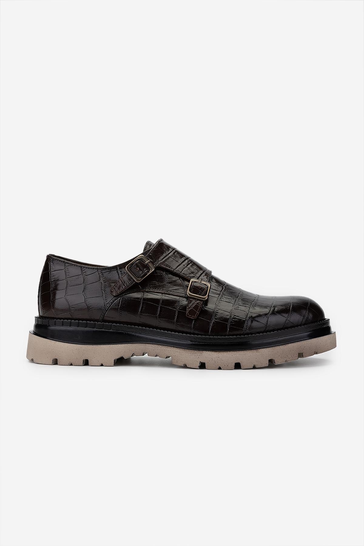 Valmenti Erkek Hakiki Deri Kahverengi Kroko Klasik Ayakkabı