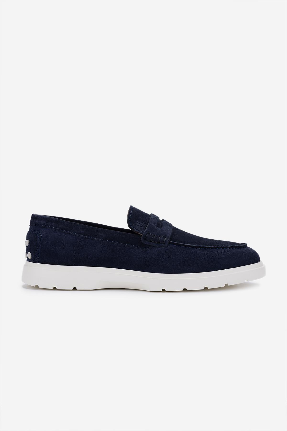 Valmenti Erkek Hakiki Deri Lacivert Süet Loafer Ayakkabı