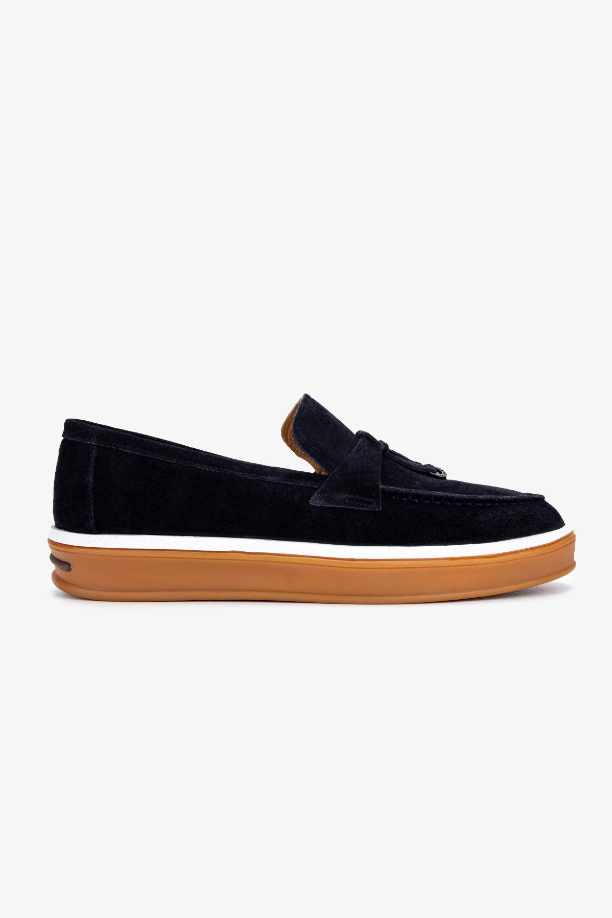 Valmenti Erkek Hakiki Deri Lacivert Süet Loafer Ayakkabı