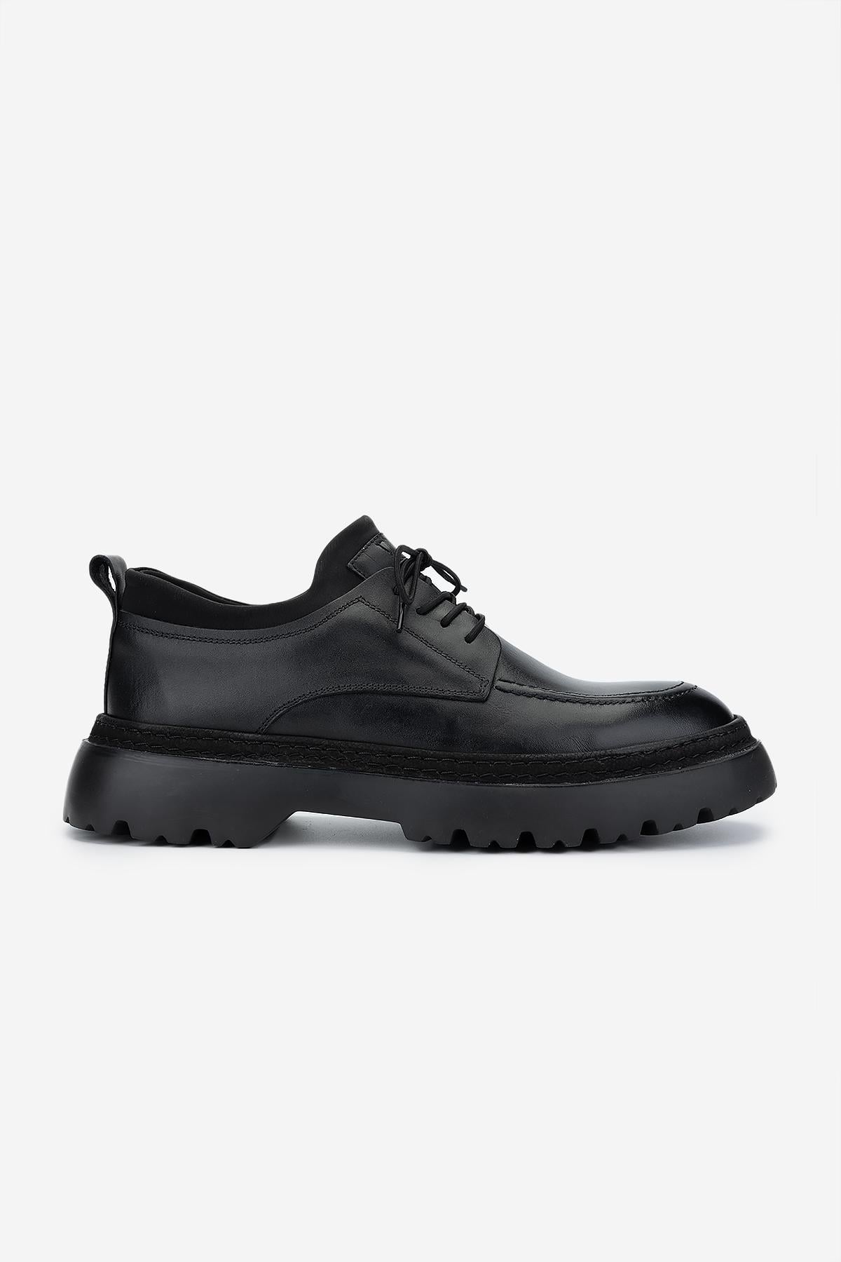 Valmenti Erkek Hakiki Deri Siyah Antik Casual Ayakkabı
