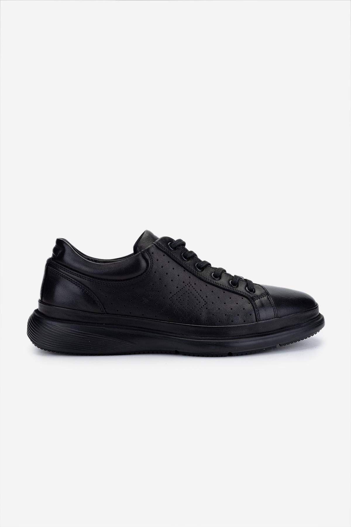 Valmenti Erkek Hakiki Deri Siyah Deri Casual Ayakkabı
