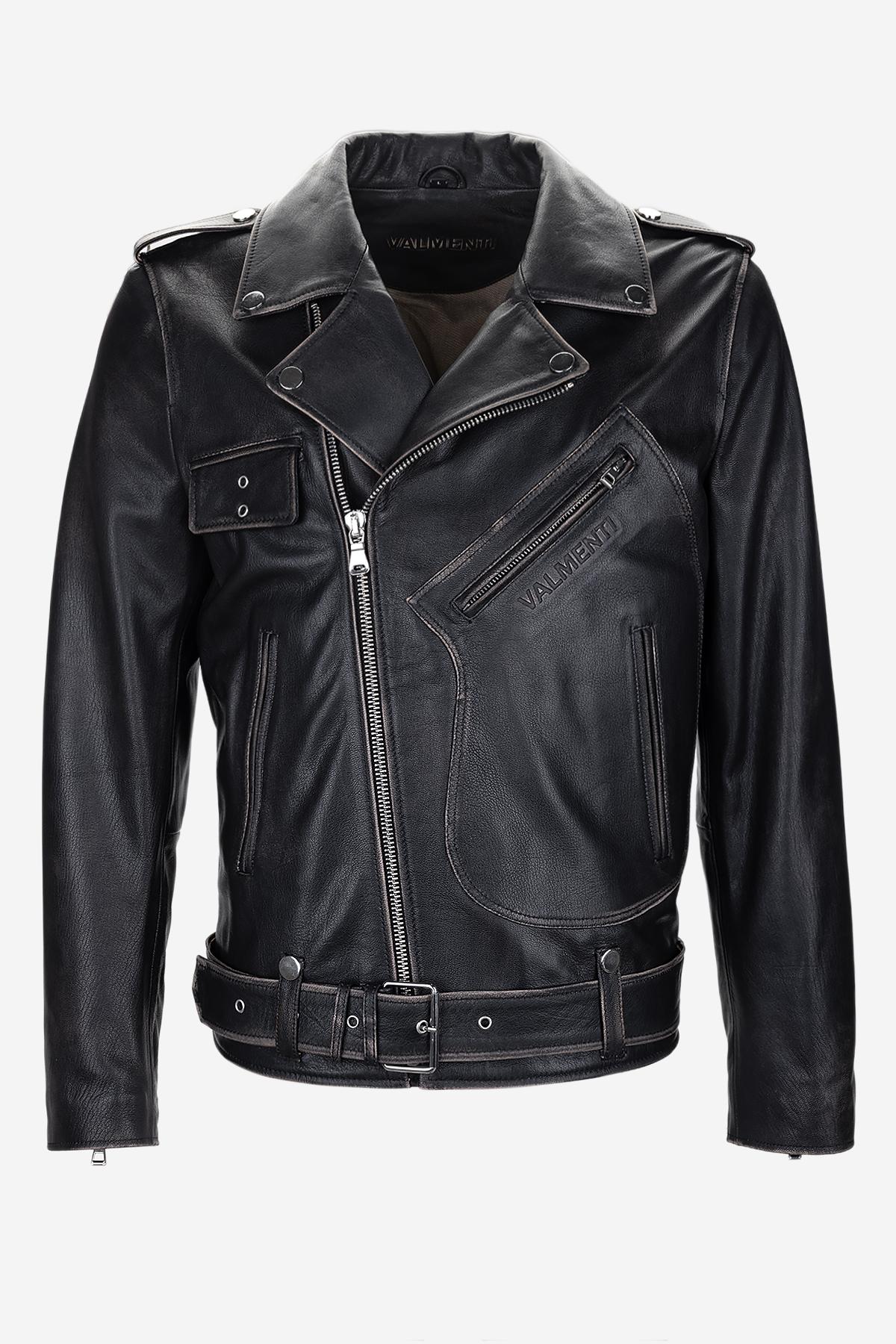 Valmenti Erkek Hakiki Deri Siyah Eskitme Deri Mont