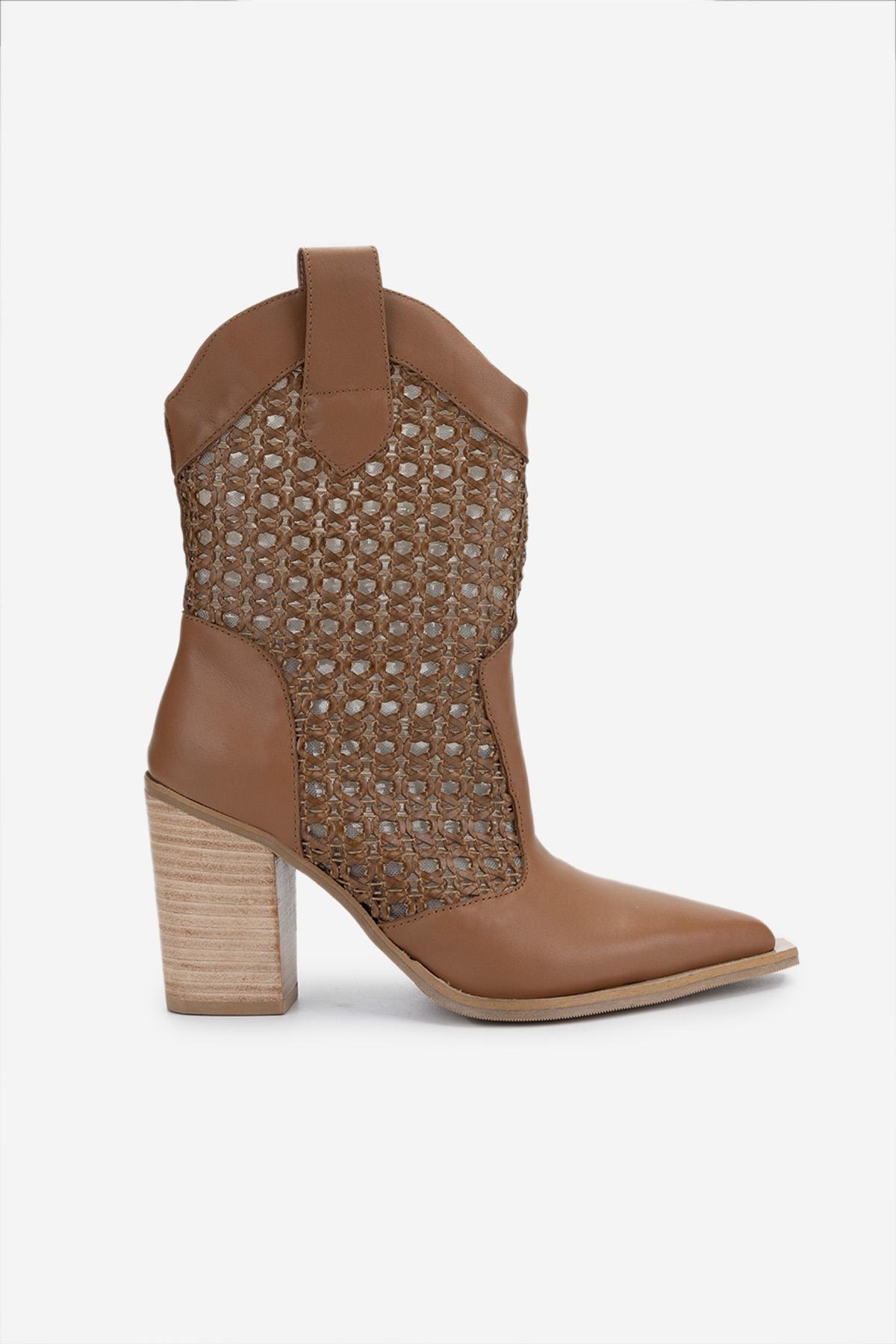 Valmenti Kadın Deri & Tekstil Taba Deri Topuklu Çizme