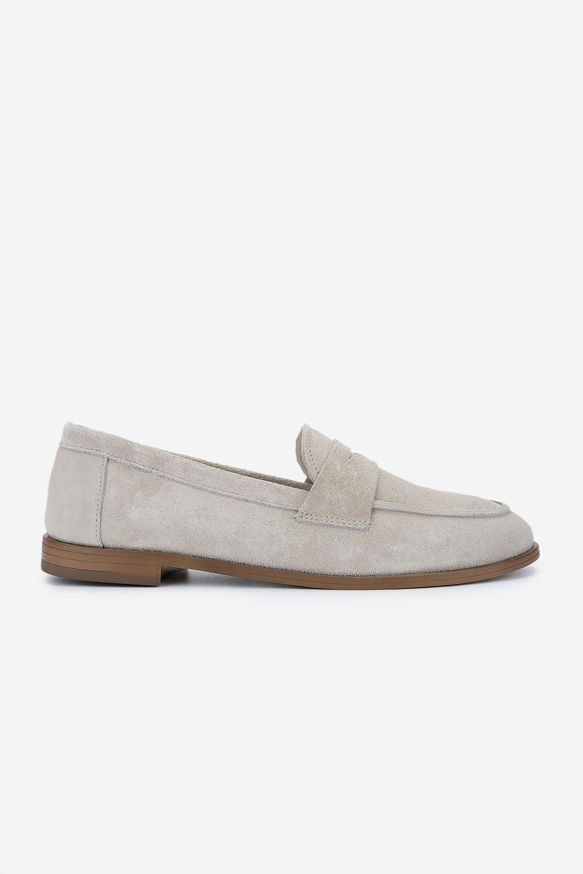 Valmenti Kadın Hakiki Deri Bej Süet Loafer Ayakkabı