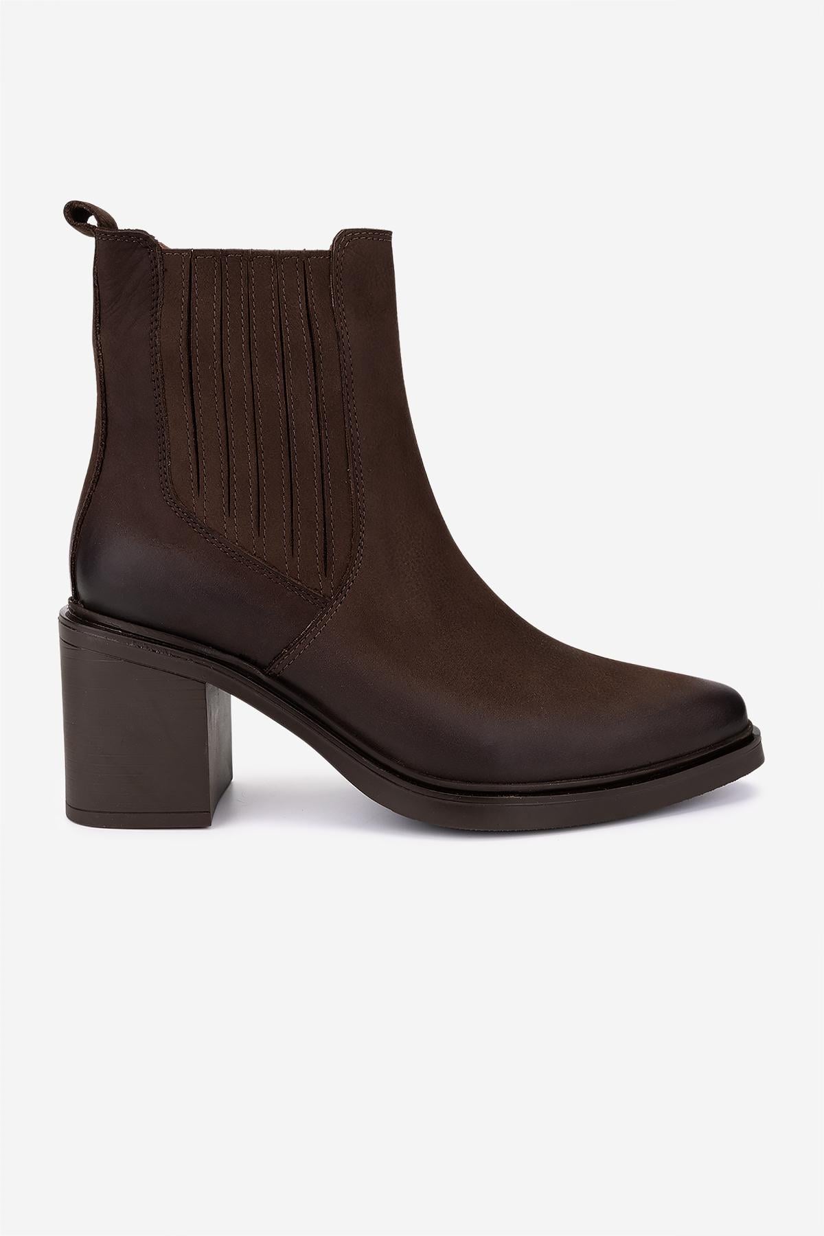 Valmenti Kadın Hakiki Deri Kahverengi Nubuk Topuklu Bot