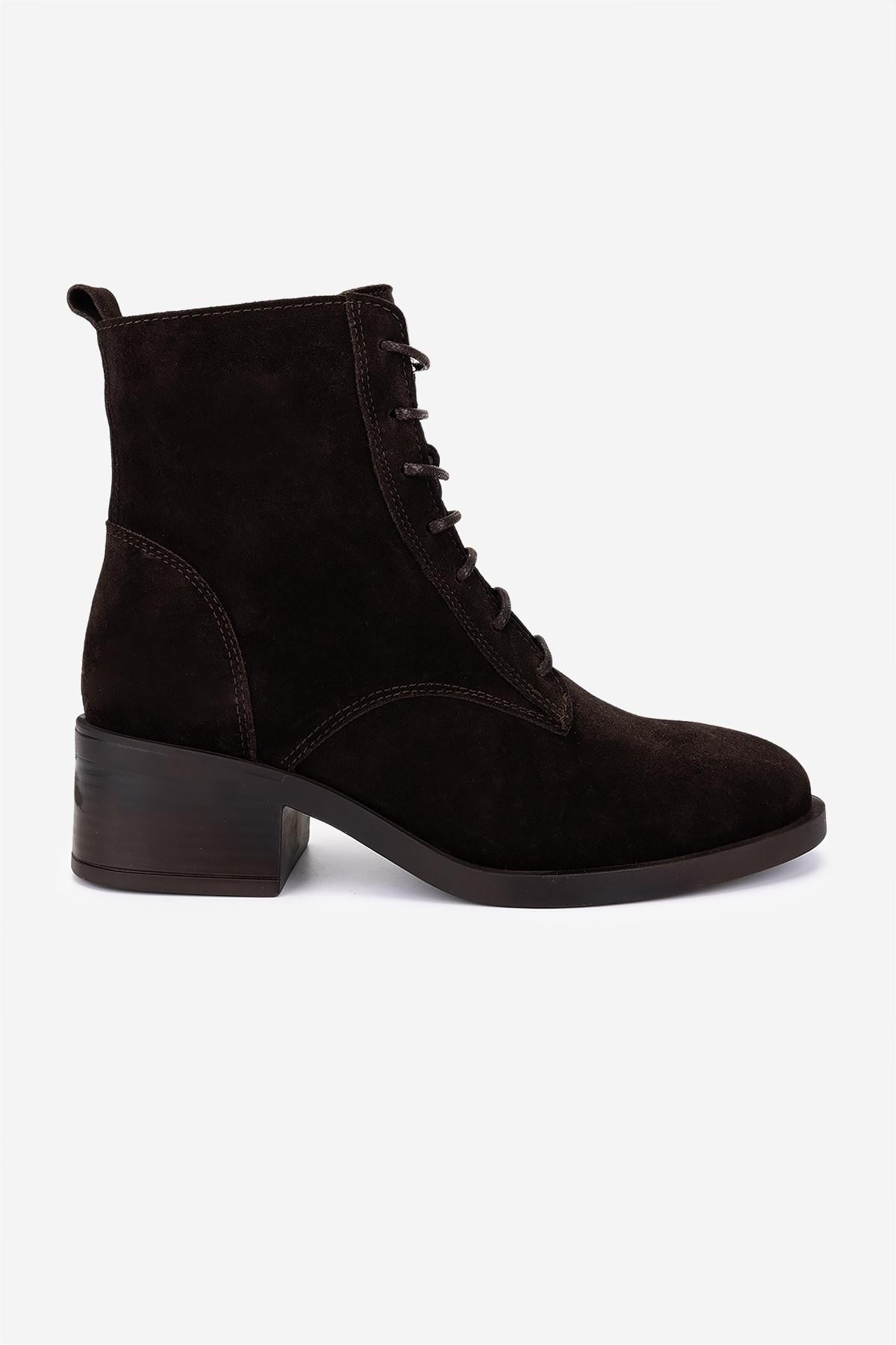 Valmenti Kadın Hakiki Deri Kahverengi Süet Topuklu Bot