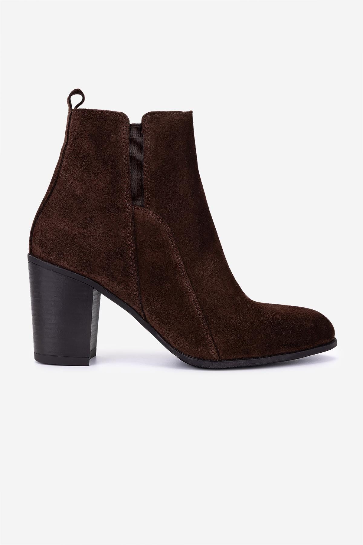 Valmenti Kadın Hakiki Deri Kahverengi Süet Topuklu Bot