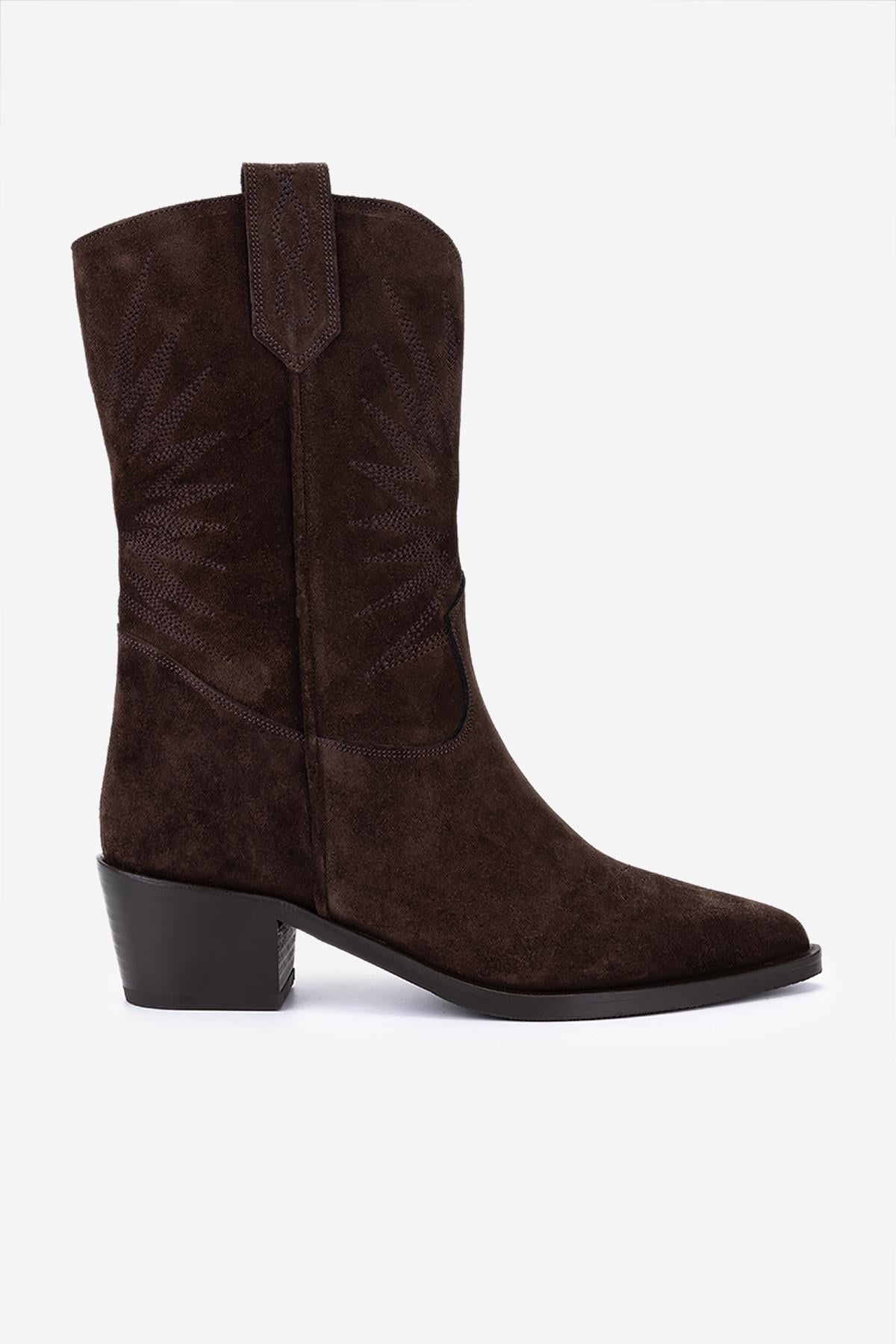 Valmenti Kadın Hakiki Deri Kahverengi Süet Western Bot