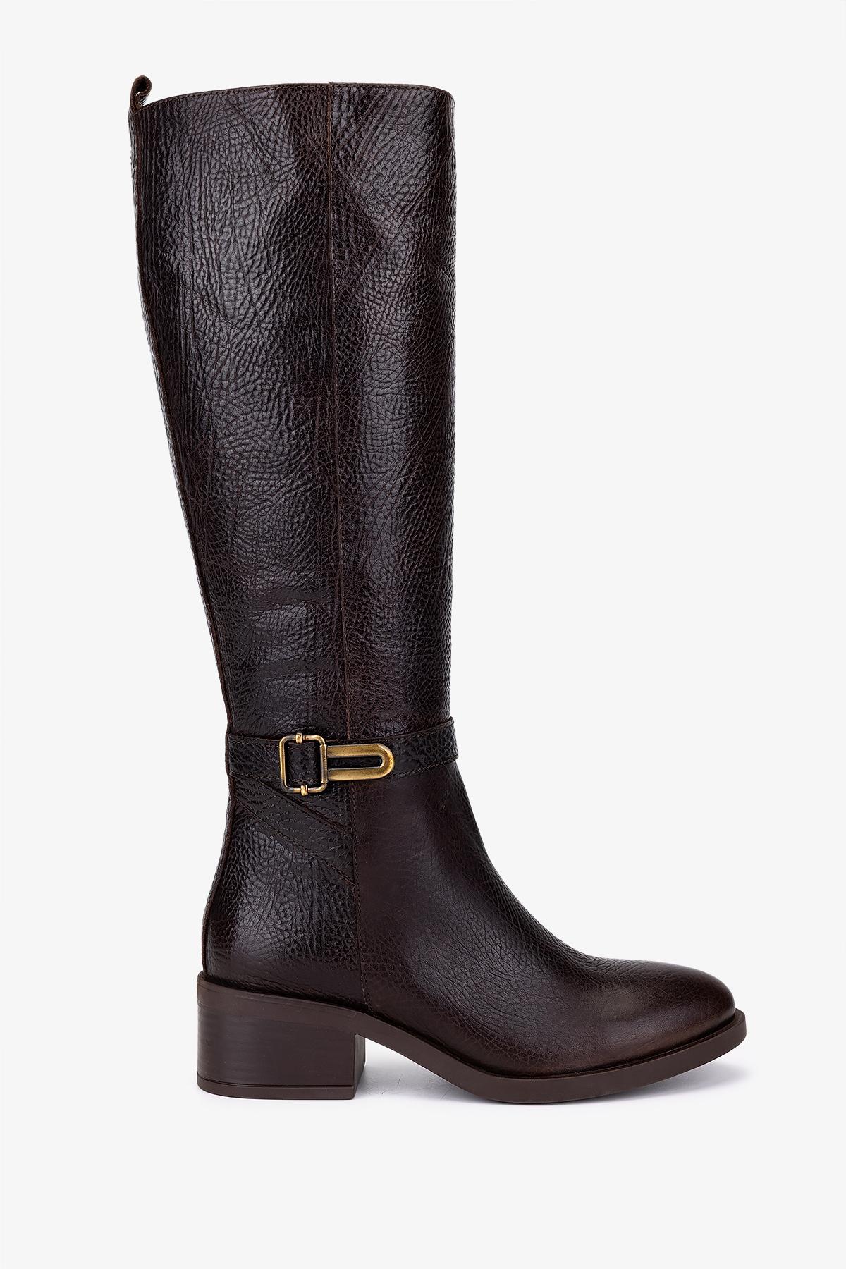 Valmenti Kadın Hakiki Deri Kahverengi Topuklu Çizme