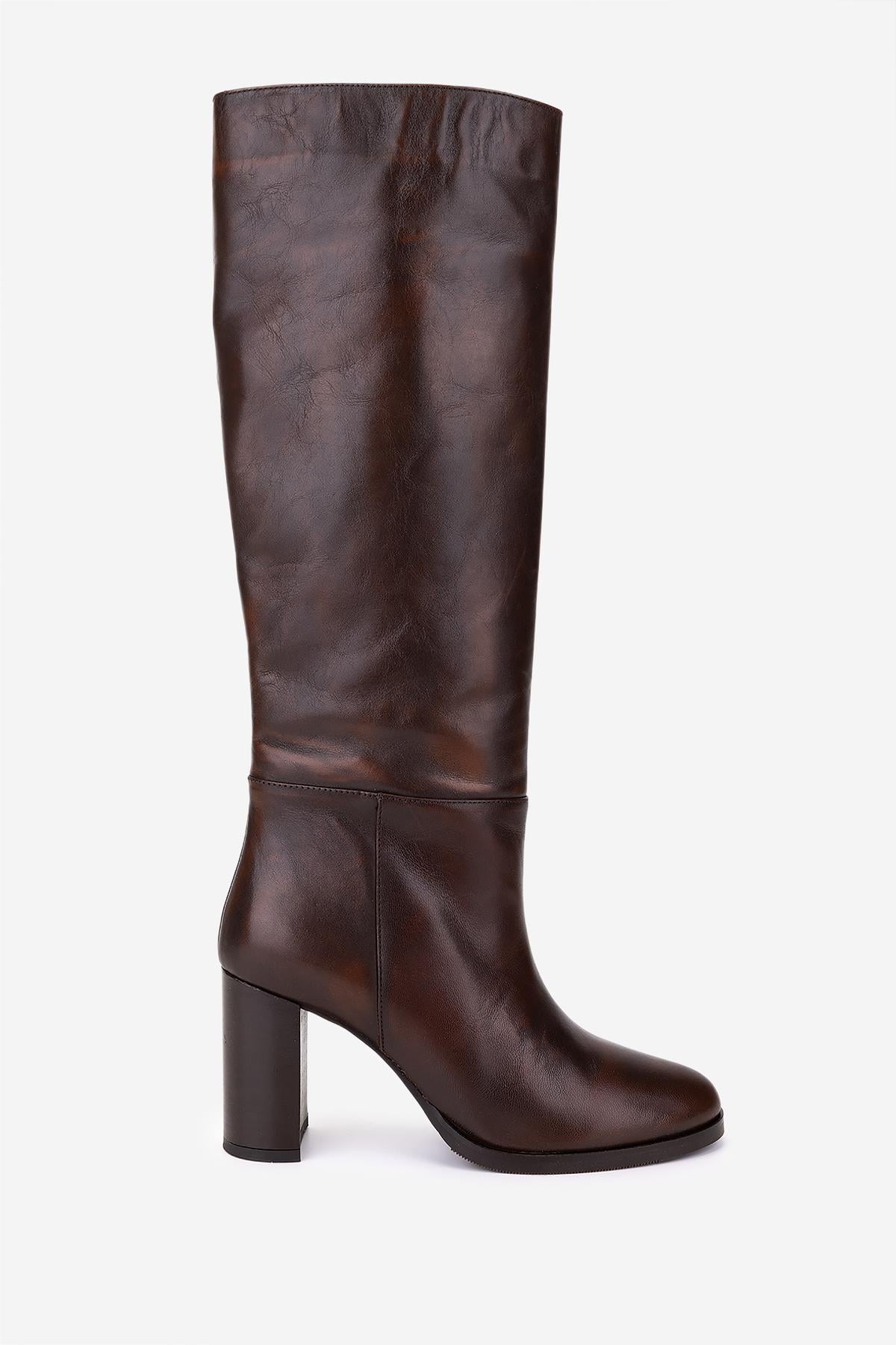 Valmenti Kadın Hakiki Deri Kahverengi Topuklu Çizme