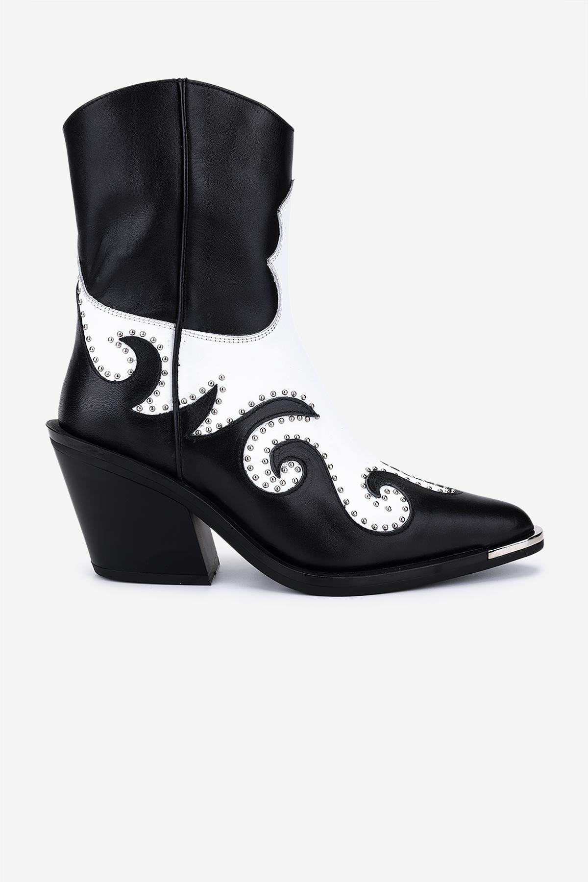 Valmenti Kadın Hakiki Deri Siyah/Beyaz Western Bot