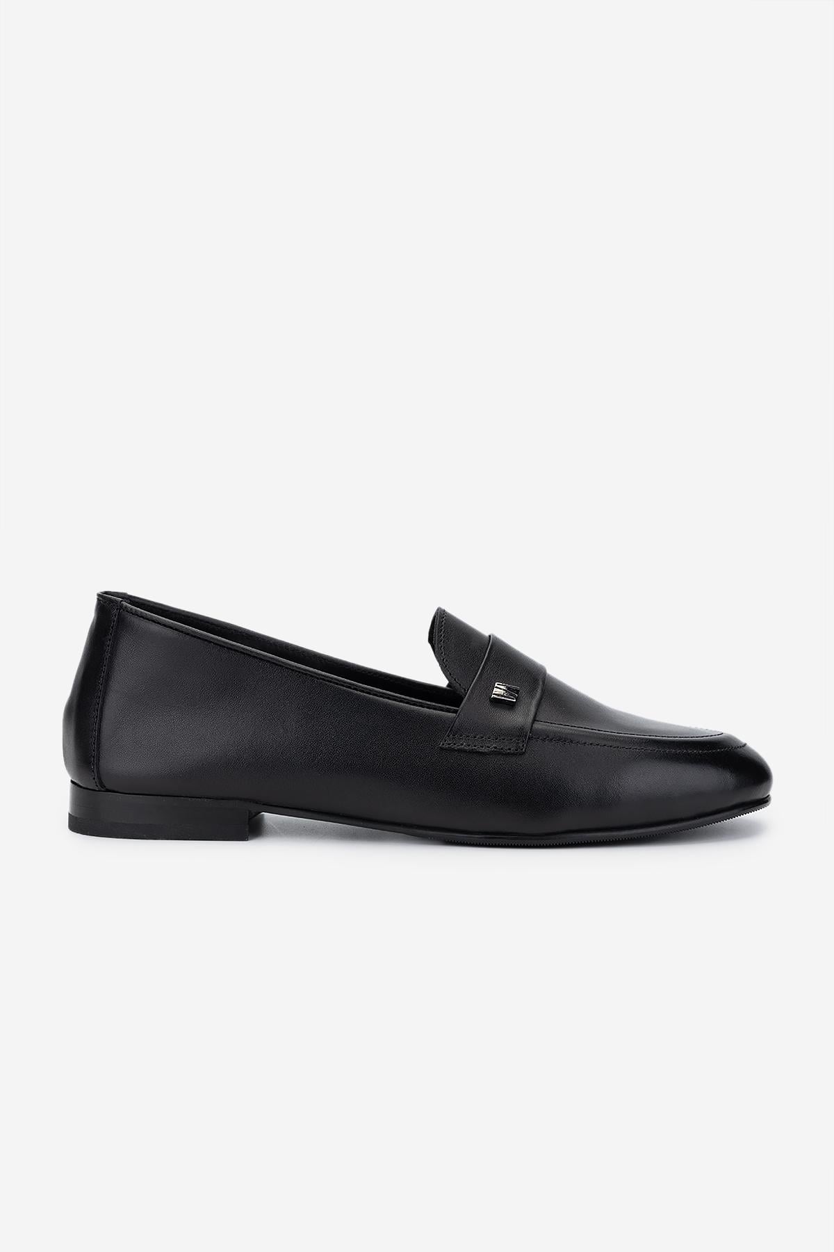 Valmenti Kadın Hakiki Deri Siyah Deri Loafer Ayakkabı