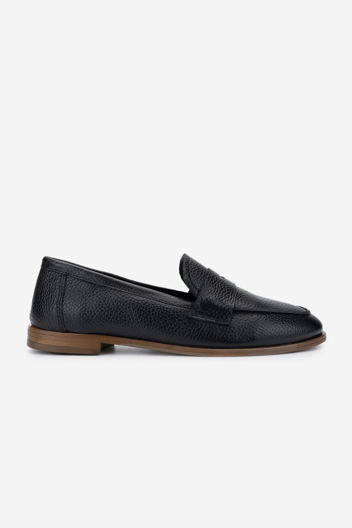 Valmenti Kadın Hakiki Deri Siyah Floter Loafer Ayakkabı