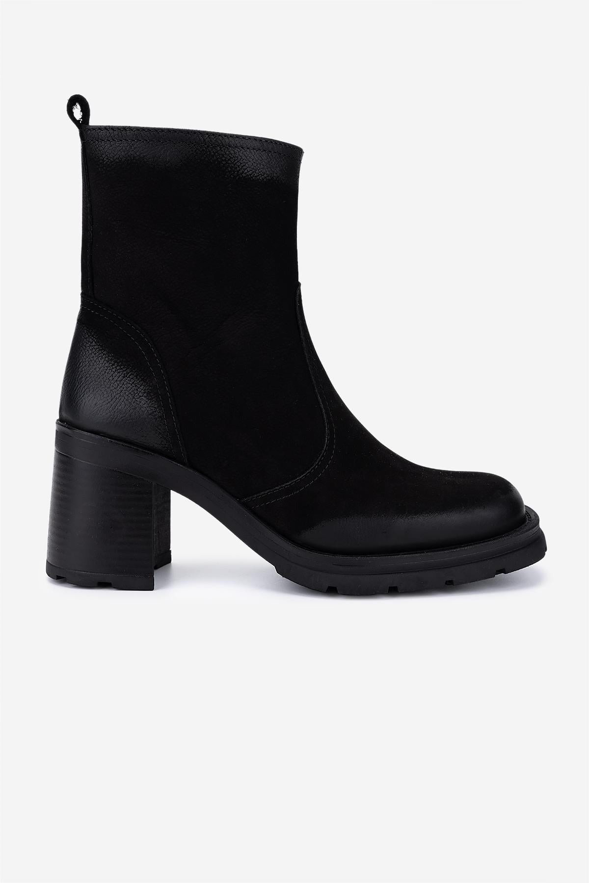 Valmenti Kadın Hakiki Deri Siyah Nubuk Topuklu Bot