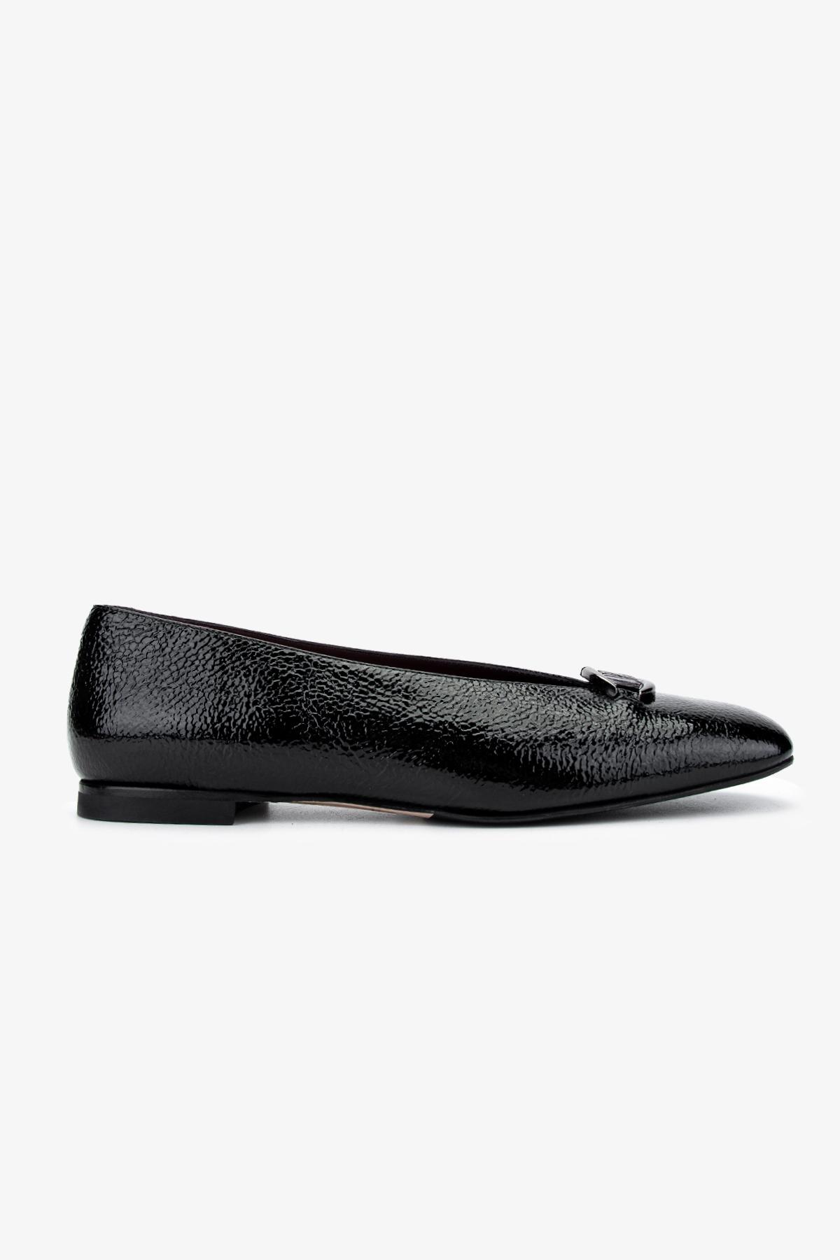 Valmenti Kadın Hakiki Deri Siyah Rugan Babet Ayakkabı