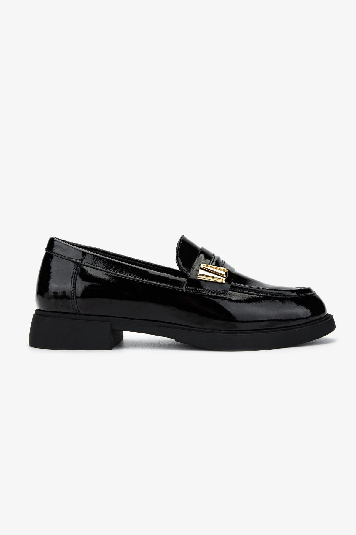 Valmenti Kadın Hakiki Deri Siyah Rugan Loafer Ayakkabı