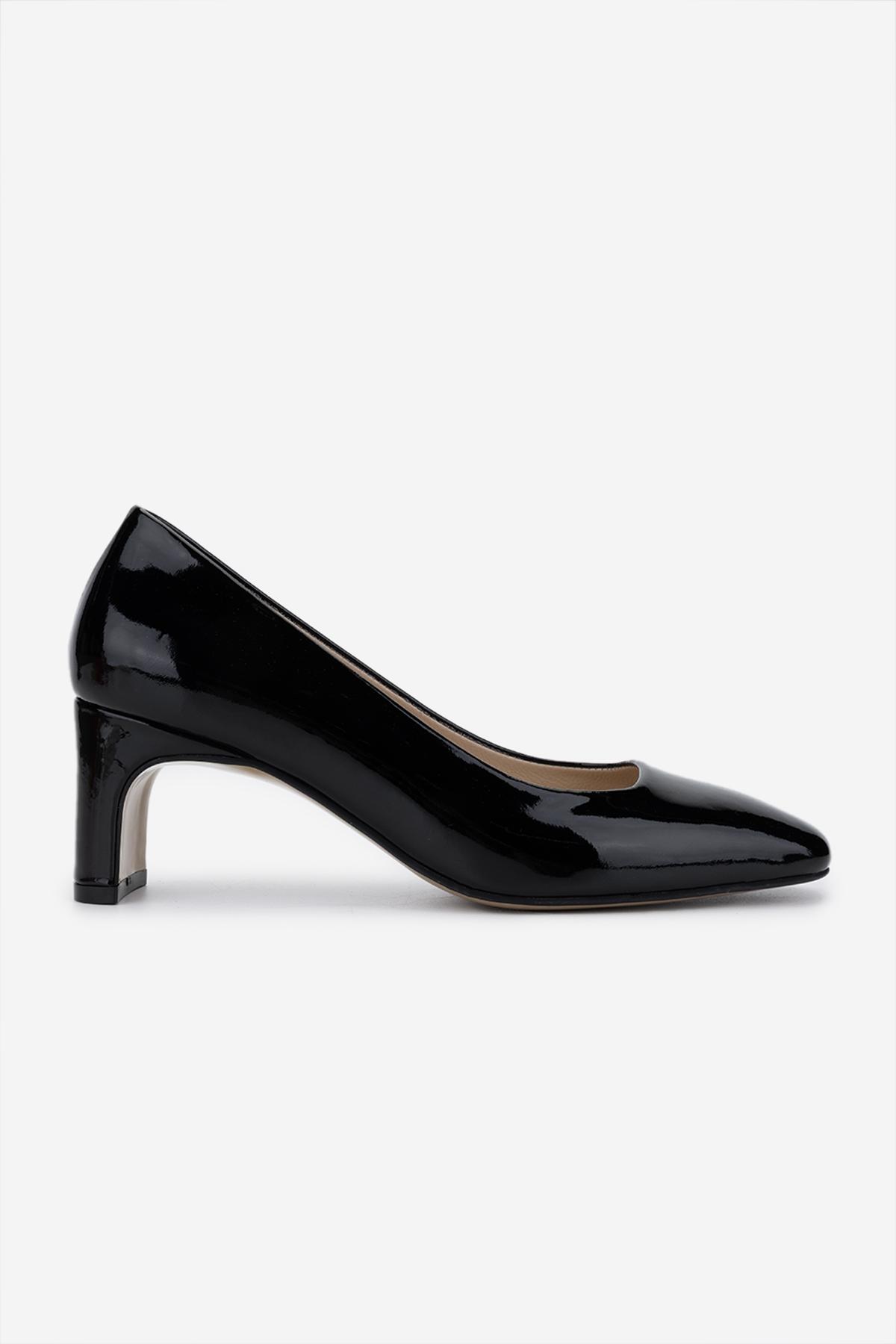 Valmenti Kadın Hakiki Deri Siyah Rugan Topuklu Ayakkabı