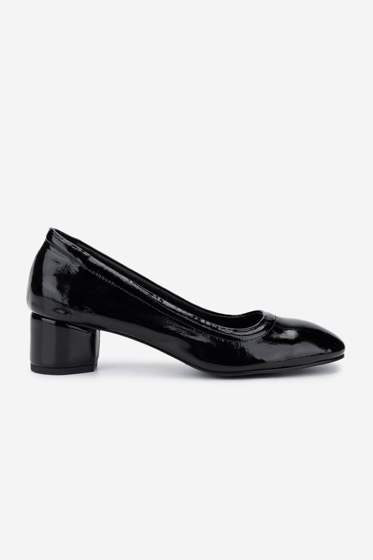 Valmenti Kadın Hakiki Deri Siyah Rugan Topuklu Ayakkabı