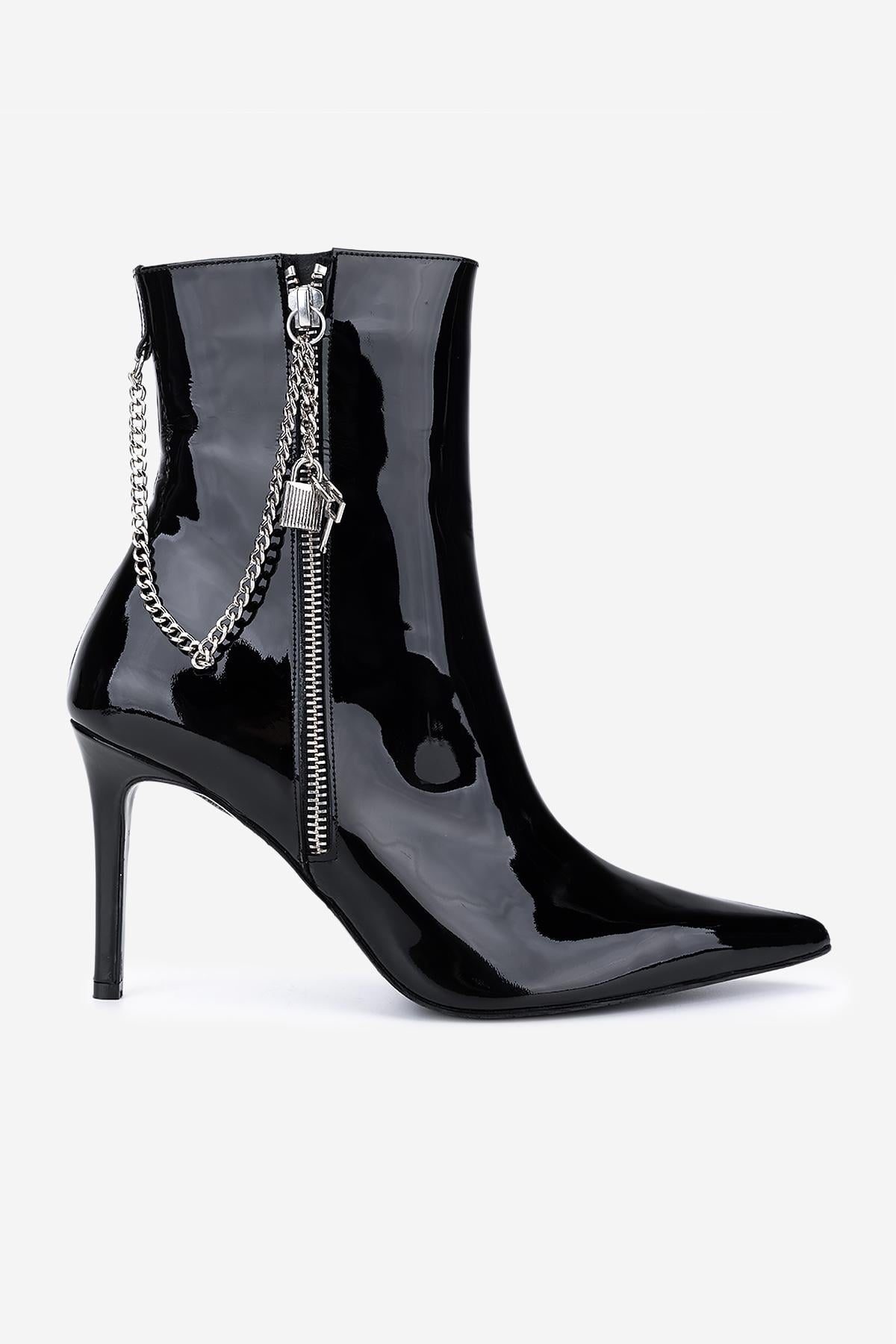 Valmenti Kadın Hakiki Deri Siyah Rugan Topuklu Bot
