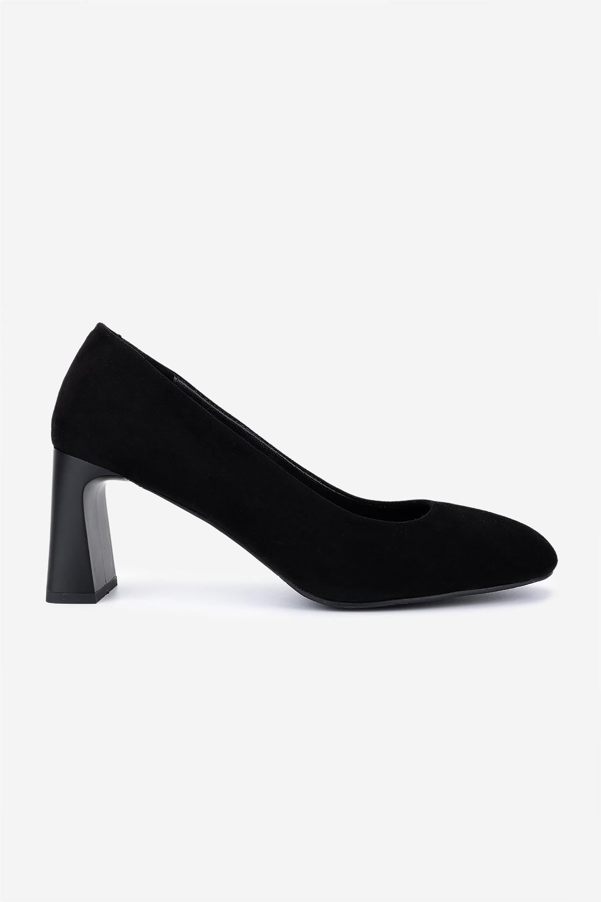 Valmenti Kadın Hakiki Deri Siyah Süet Topuklu Ayakkabı