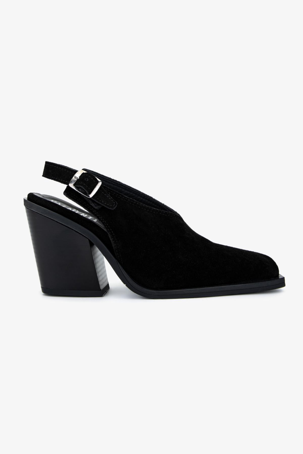 Valmenti Kadın Hakiki Deri Siyah Süet Topuklu Ayakkabı