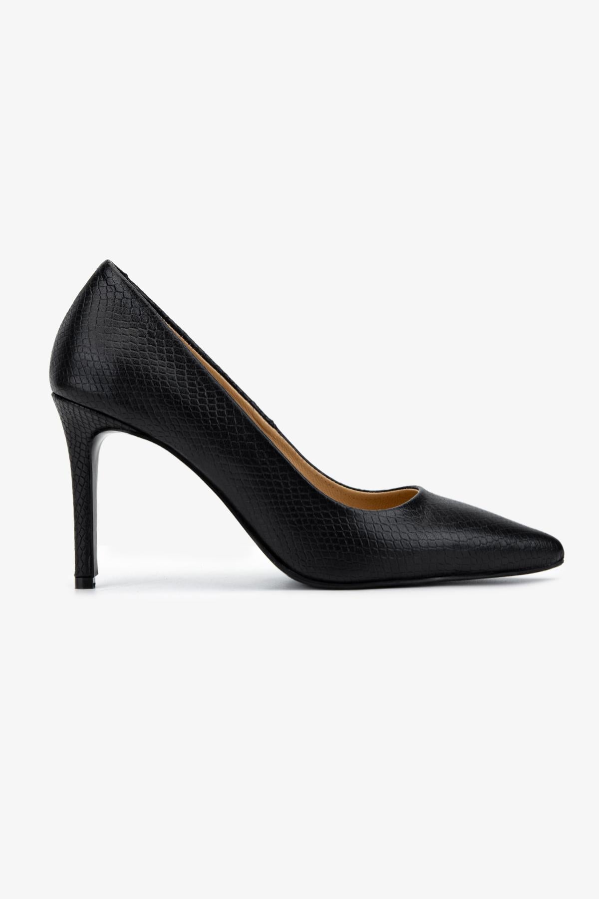 Valmenti Kadın Hakiki Deri Siyah Yılan Desen Topuklu Ayakkabı