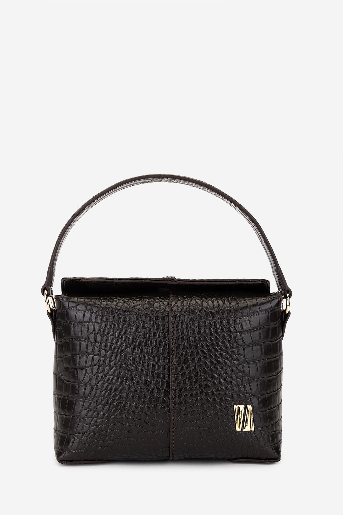 Valmenti Kadın Suni Deri Kahverengi Kroko Omuz Çanta