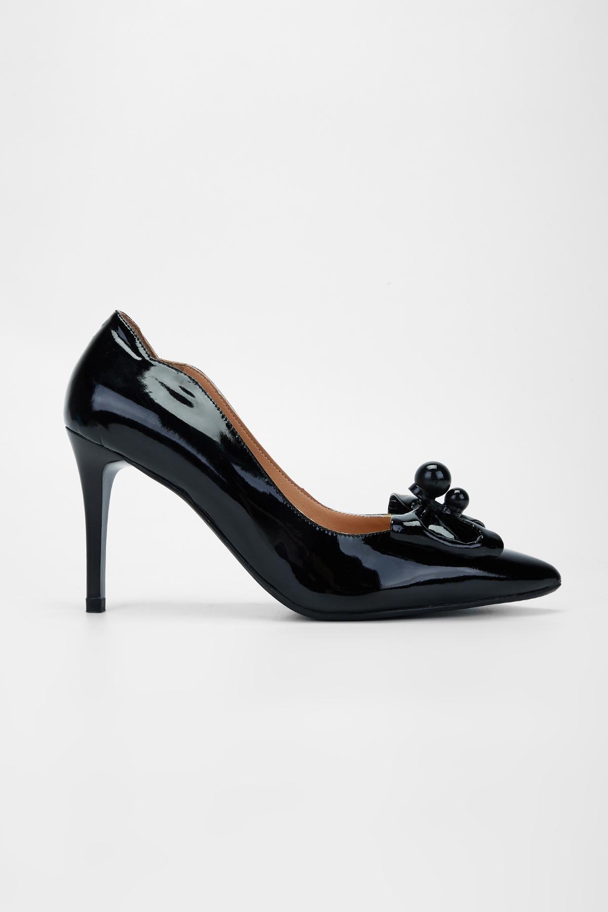 Valmenti Nozario Kadın Siyah Rugan Hakiki Deri Topuklu Ayakkabı