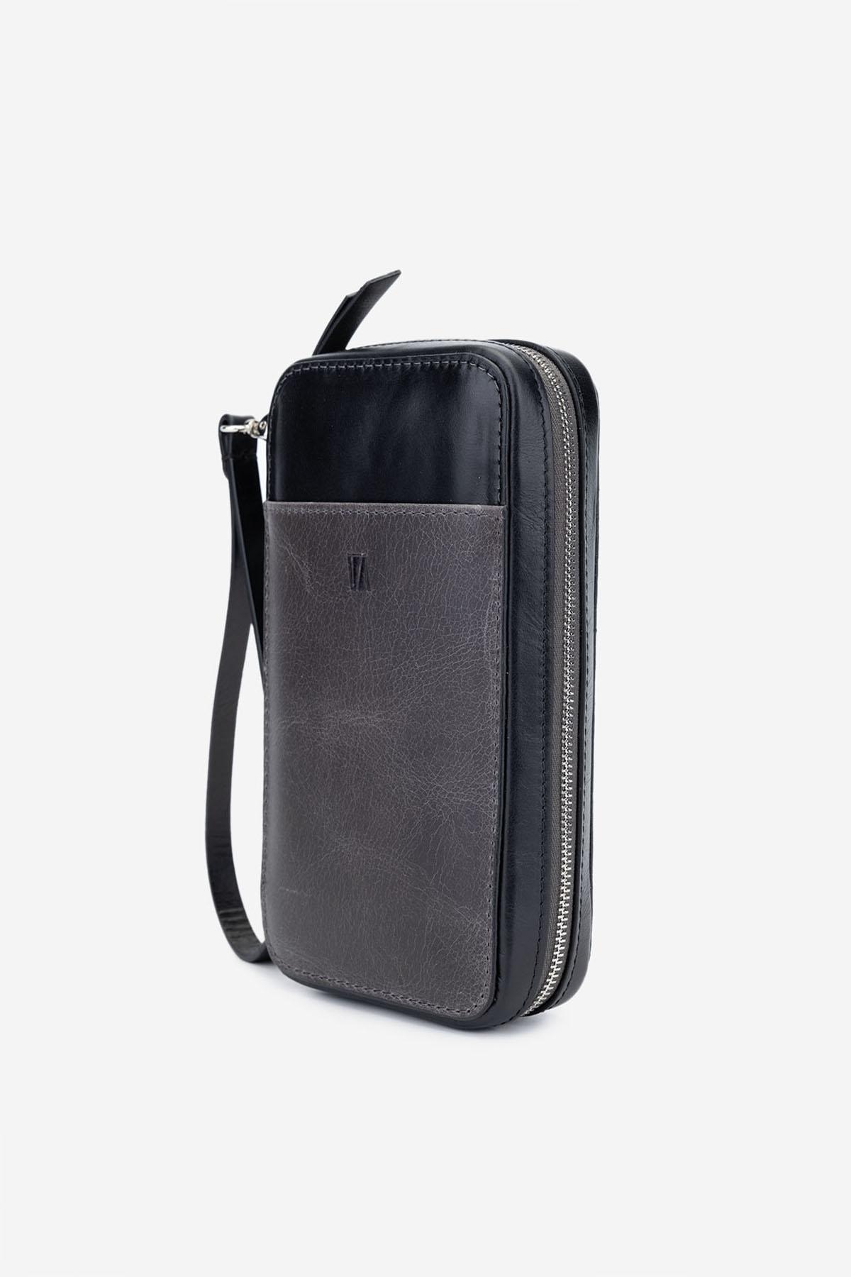 Valmenti Origame Erkek Gri\Siyah Hakiki Deri El Çantası