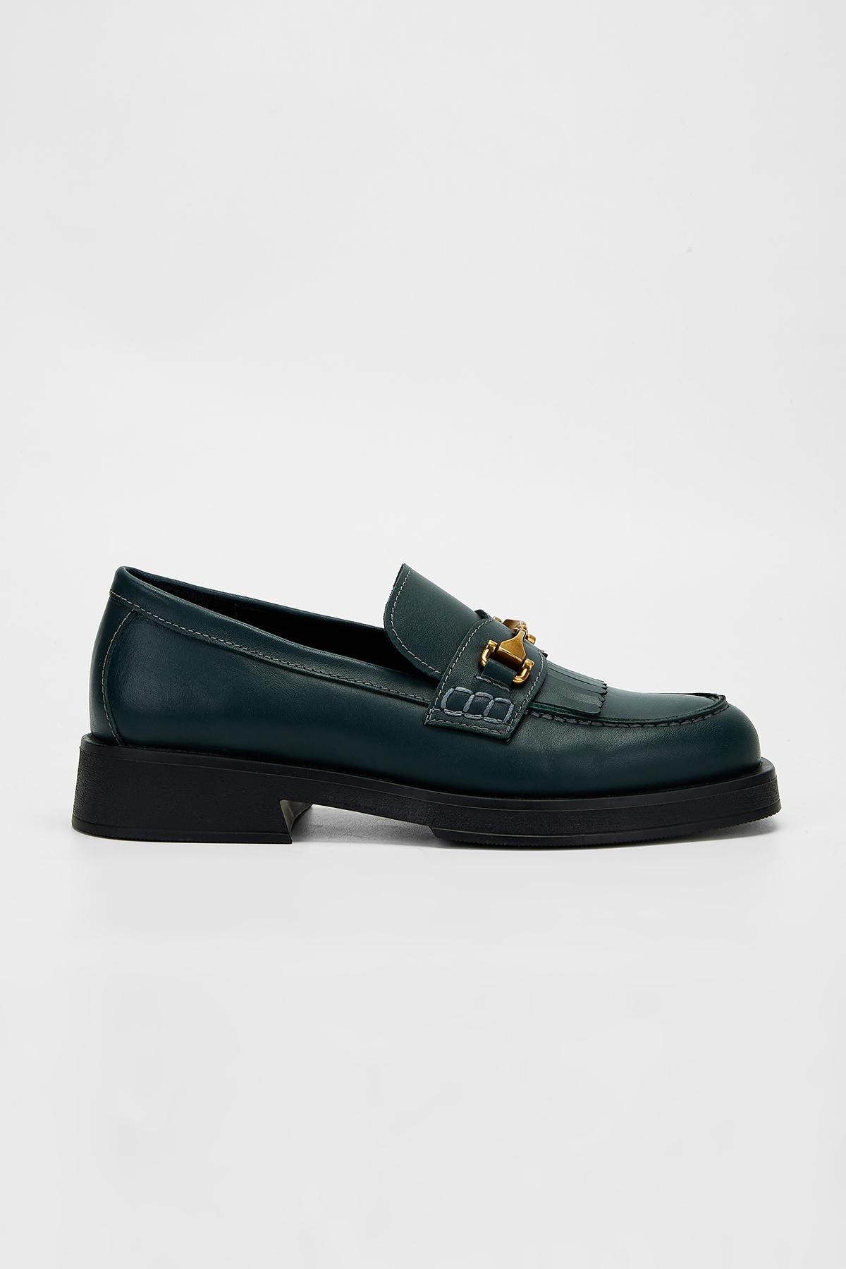 Valmenti Situla Kadın Petrol Hakiki Deri Loafer Ayakkabı
