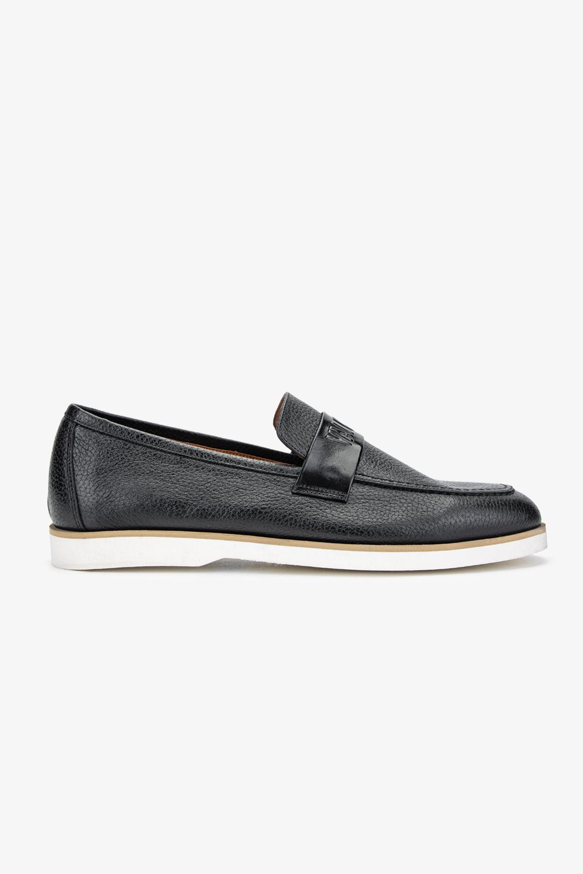 Valmenti Vuslat Erkek Siyah Floter Hakiki Deri Loafer Ayakkabı