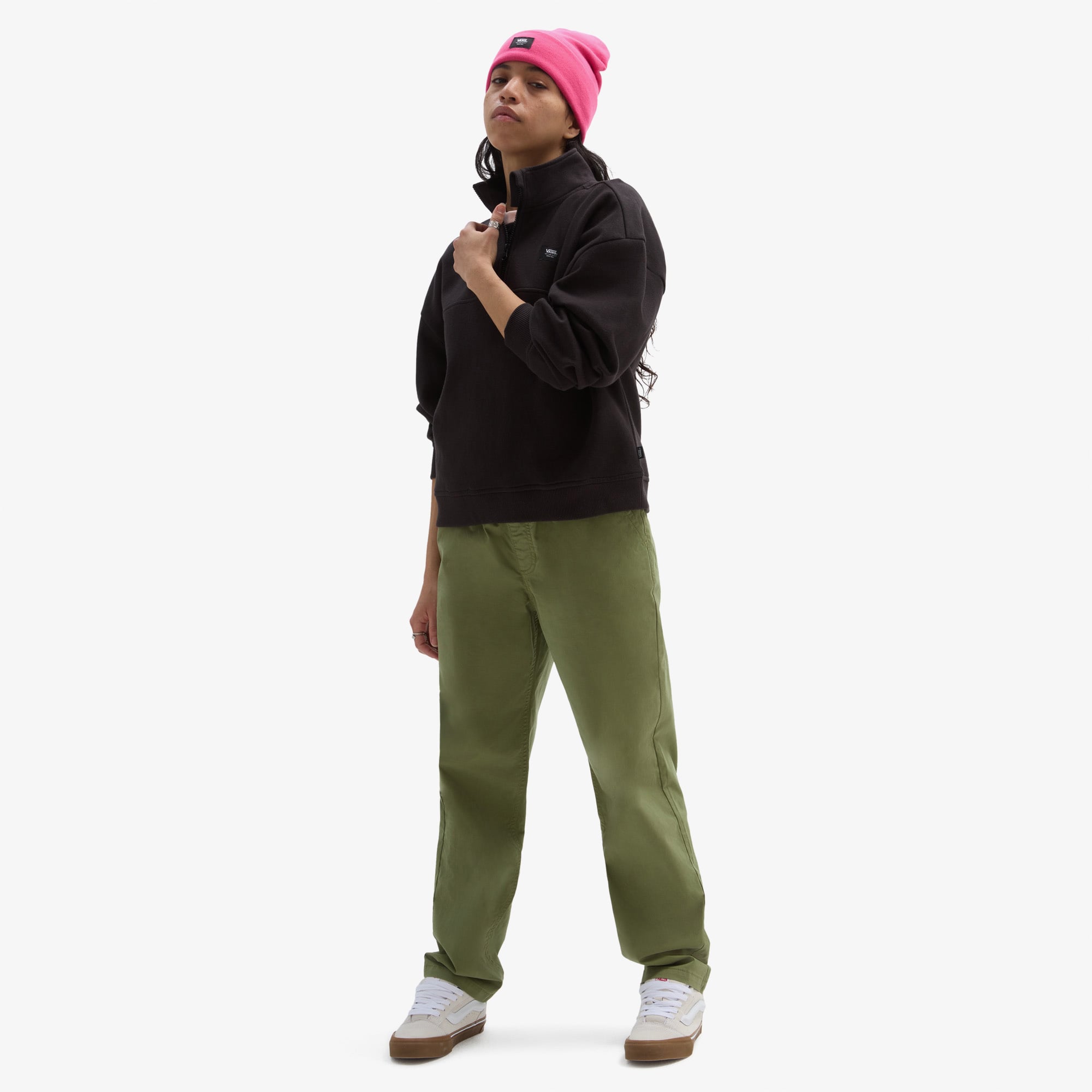 Vans Leighton Mock Neck Fleece Sweatshirt, Vans'in Leighton koleksiyonundan, kadınlar için tasarlanmış siyah renkte bir sweatshirttür.